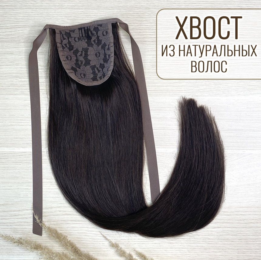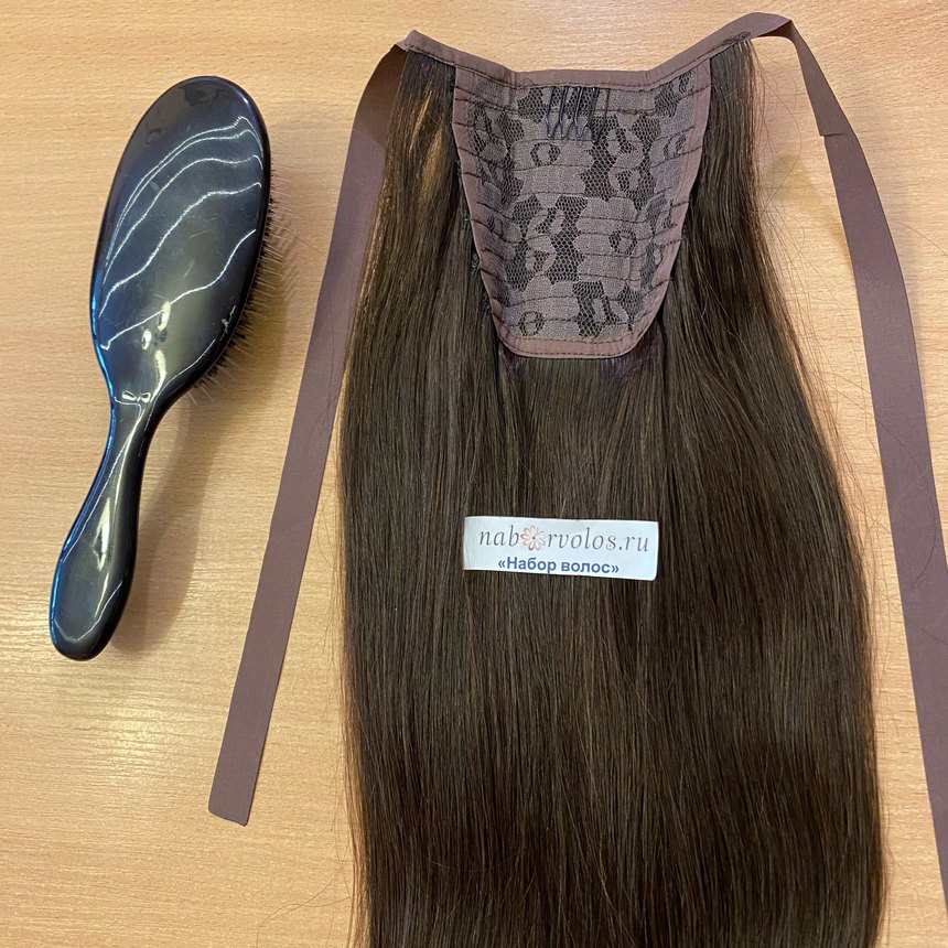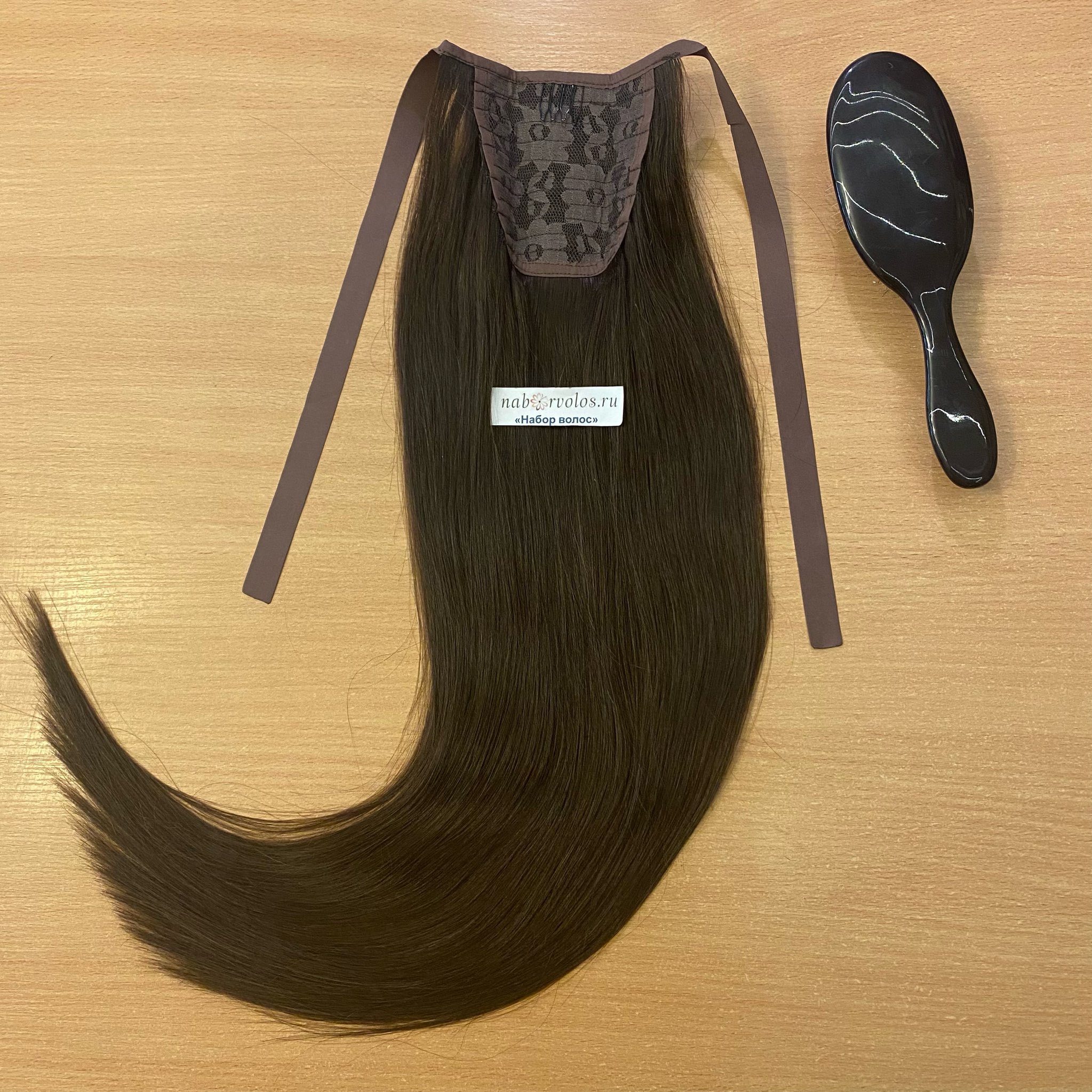 Накладной хвост из натуральных волос горький шоколад 60см #2