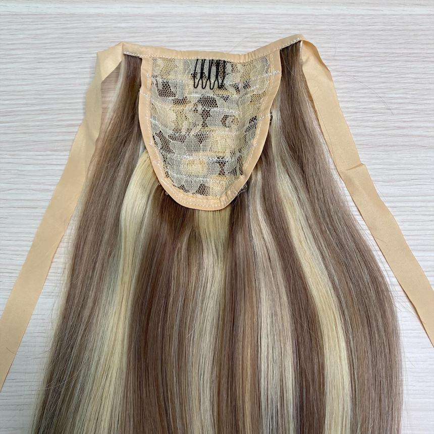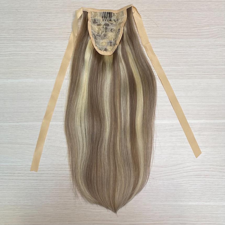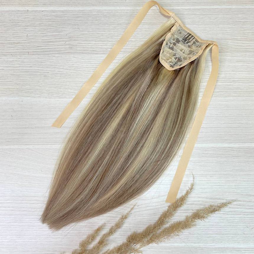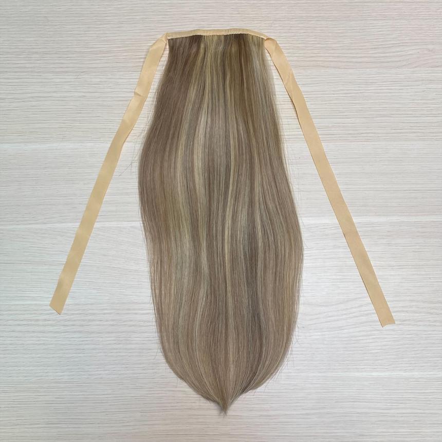 Накладной хвост-шиньон для волос натуральный 40см - мелированный оттенок #10/613