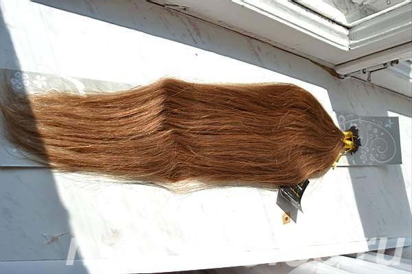 Натуральные азиатские русые волосы на капсулах 55см 100г