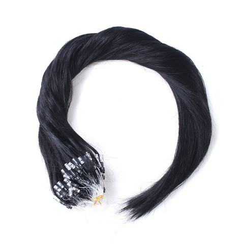 Натуральные черные волосы на микрокольцах 100 прядей 55см (100г)