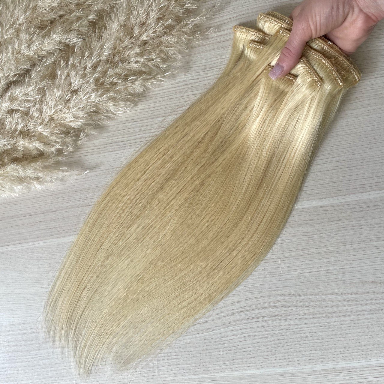 Накладные волосы на заколках – это набор накладных прядей, которые крепятся к своим волосам благодаря заколочкам с силиконовой прослойкой, с помощью которых пряди хорошо держатся и не сползают. Трессы на заколках подходят для девушек, которые хотят длинные и густые волосы. Они подойдут для ежедневной носки (можно сделать сложную укладку, собрать красивый хвост или оставить волосы распущенными) так и для создания вечерних и свадебных образов. Заколки не заметны, любая прическа будет выглядеть естественно.Наши волосы на заколках не содержат искусственных примесей. С ними можно делать всё, что со своими собственными волосами: тонировать, окрашивать, сушить феном, мыть, использовать плойки и утюжки. Волосы европейские премиум класса обеспечат длительную носку и отличный внешний вид в ходе использования.
