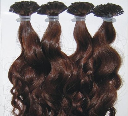 Натуральные волосы на капсулах кудрявые 50см 50г 50прядей - коричневый #4