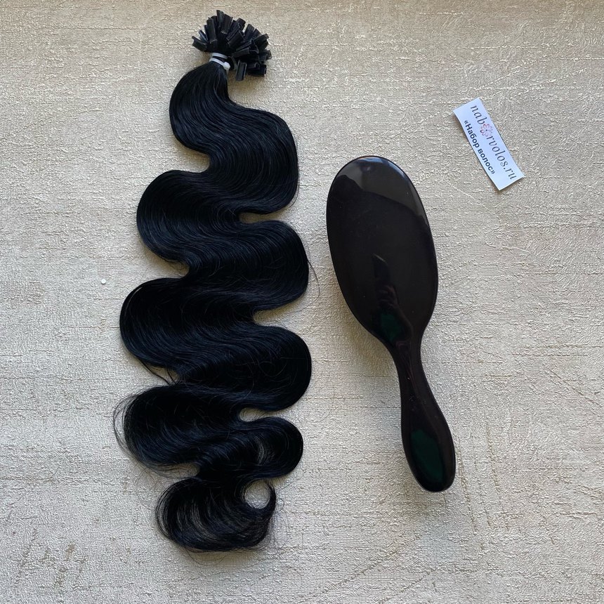 Комплект волос на капсулах - "NaborVolos" черного цвета.