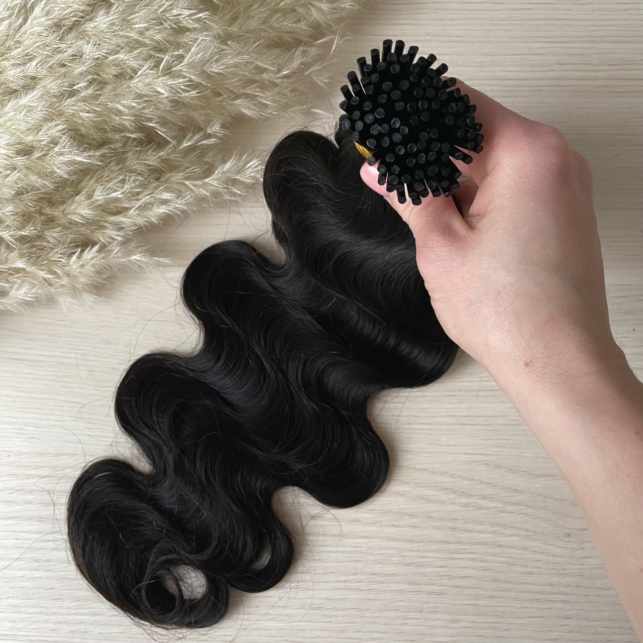 Натуральные кудрявые волосы на капсулах 50см 100г 100прядей - натуральный черный #1b