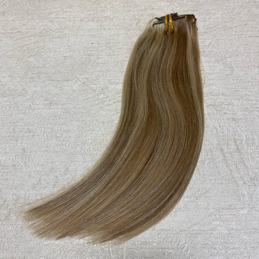 Натуральные пряди на заколках 40см 90г - мелированный #12/613