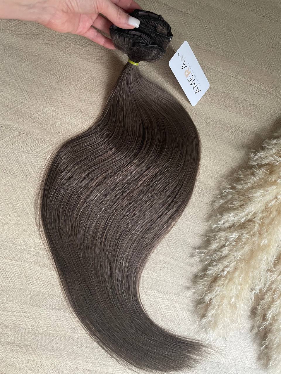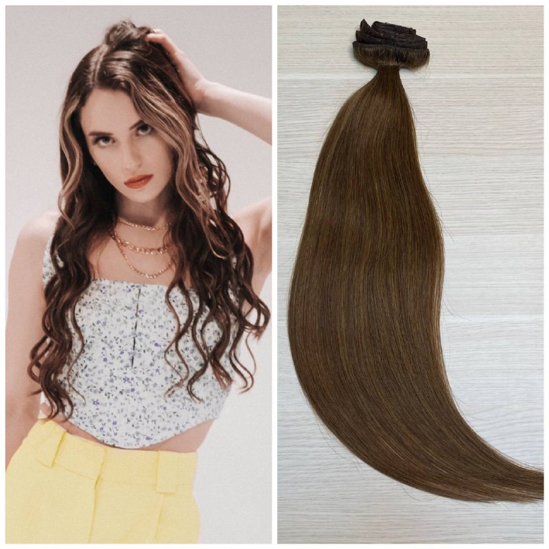 Натуральные русые волосы на заколках #6 60см