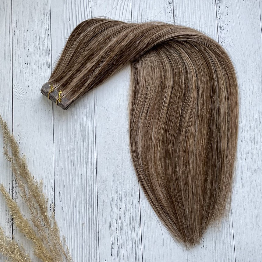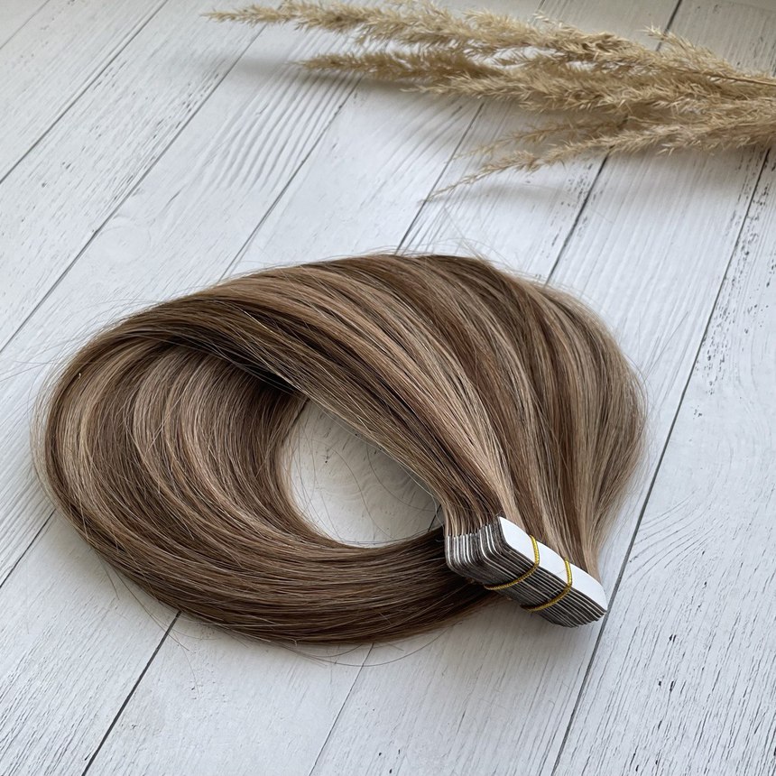 Набор натуральных волос на лентах для холодного клеевого наращивания - 20 прядей.