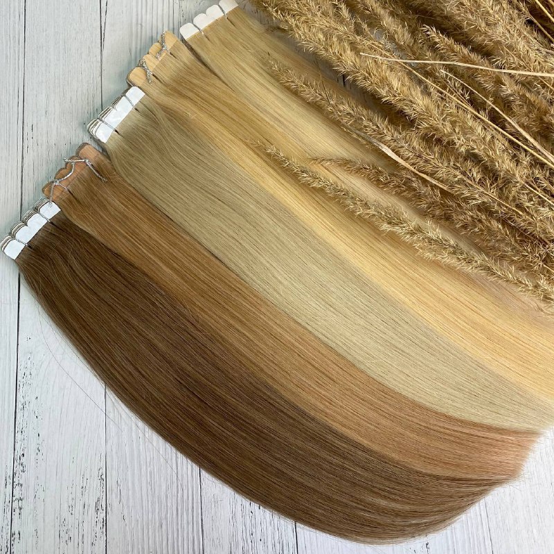 Набор натуральных волос на лентах для холодного клеевого наращивания - 20 прядей.