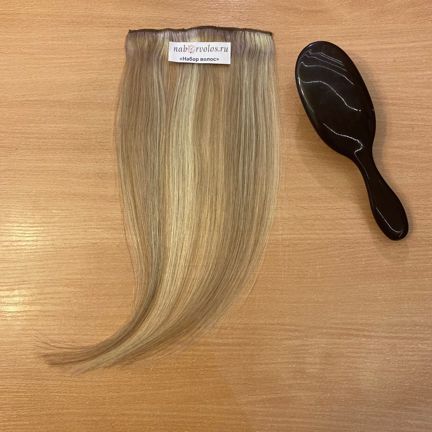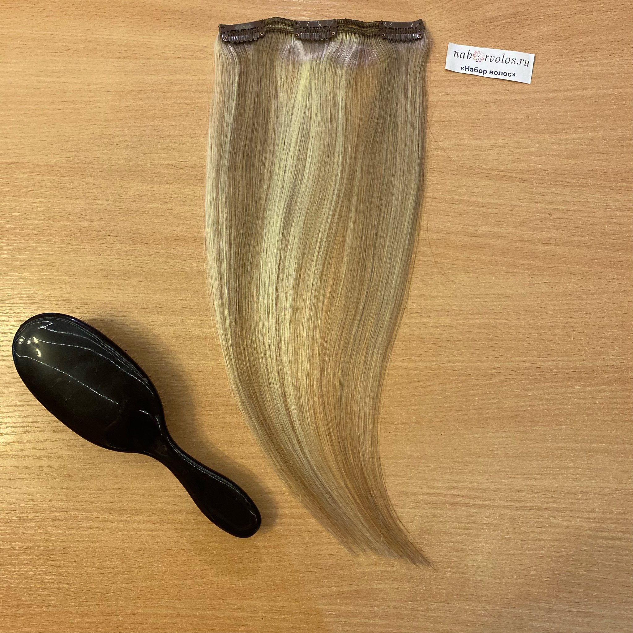 Натуральные волосы 40см - одна прядь на 3 заколках мелированный 18/613