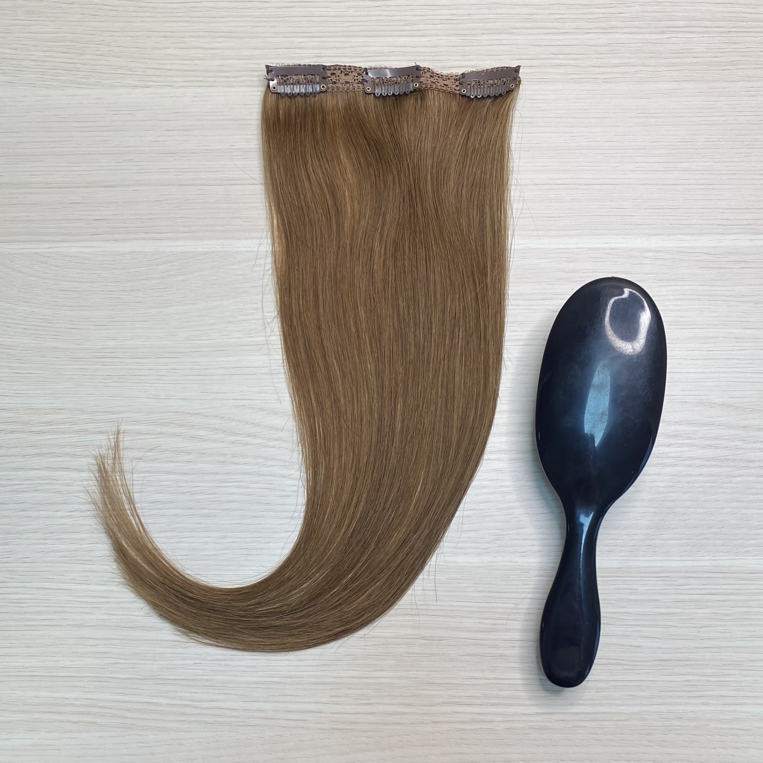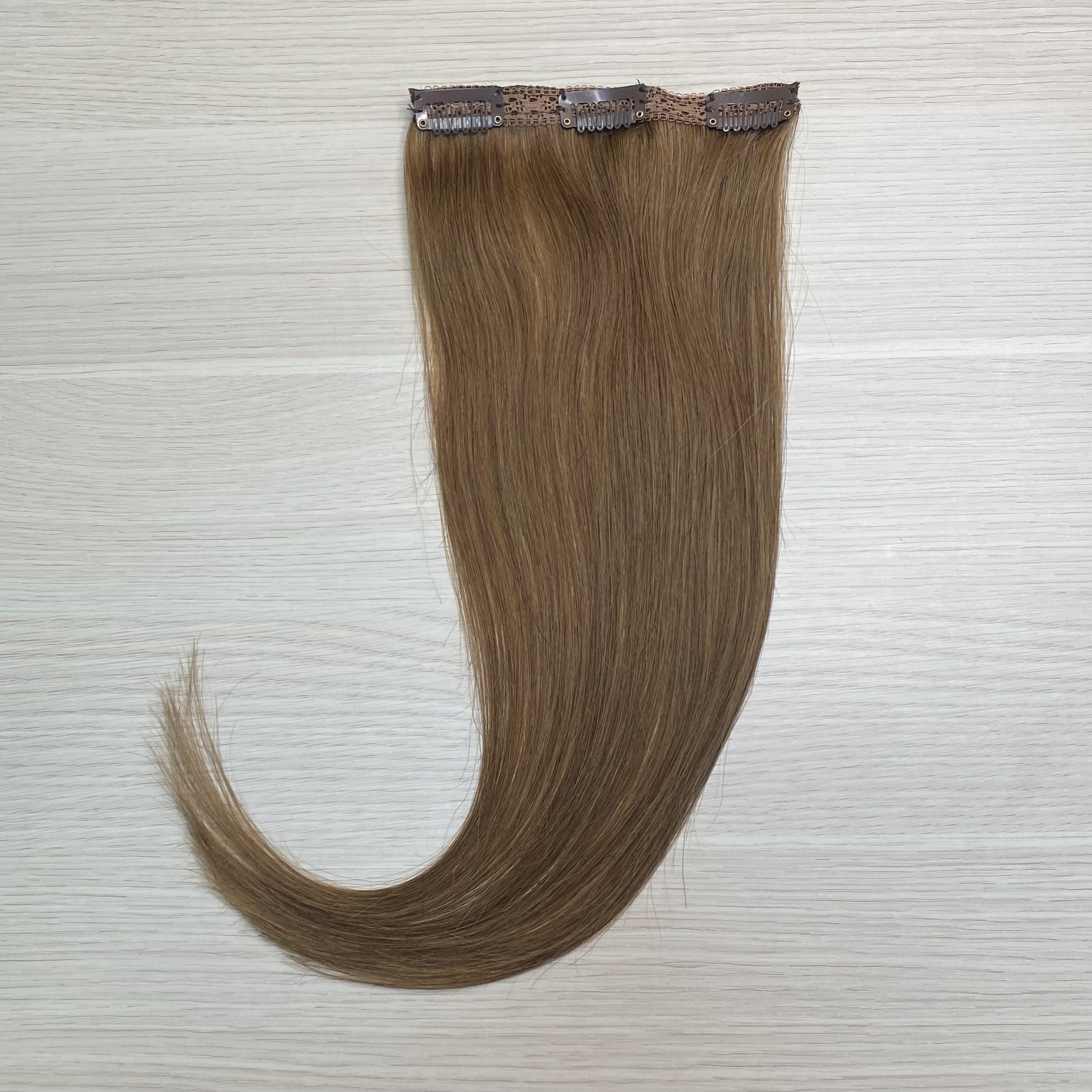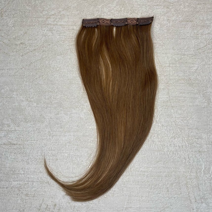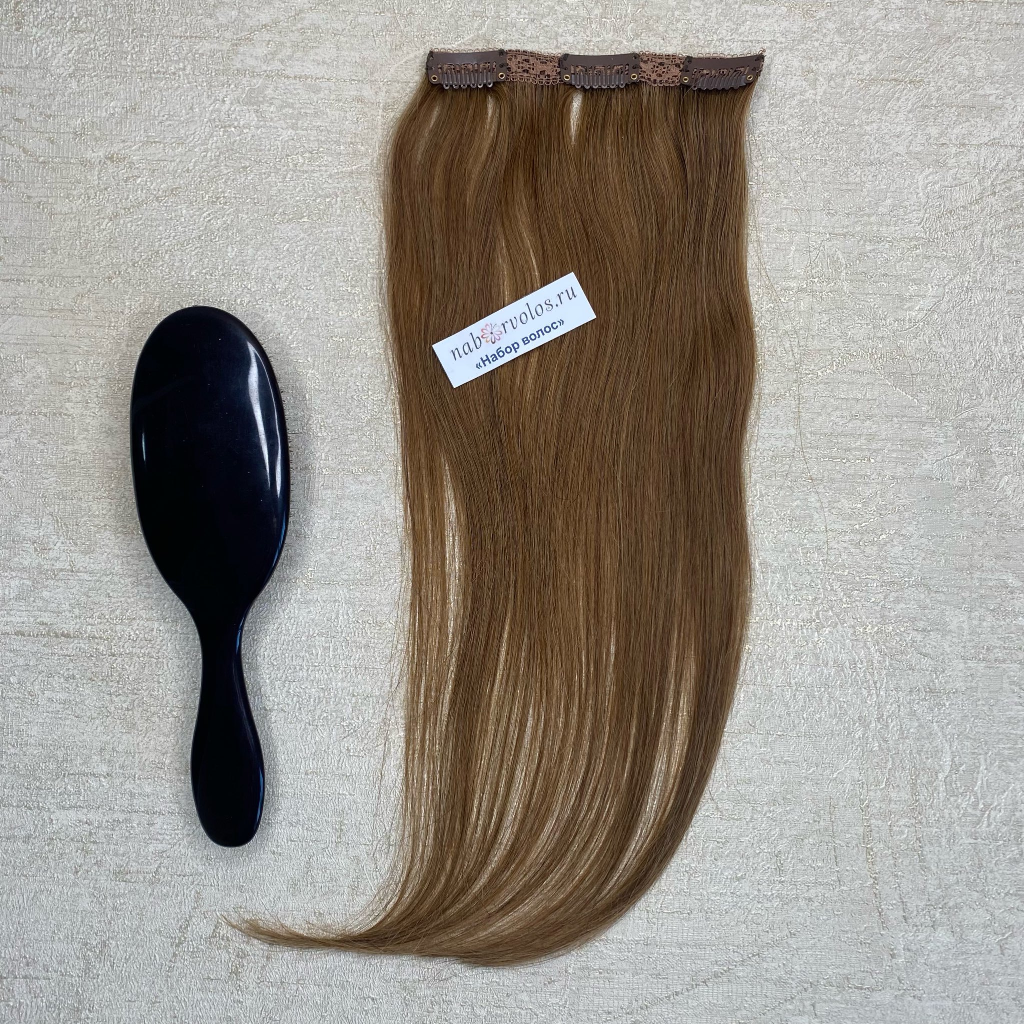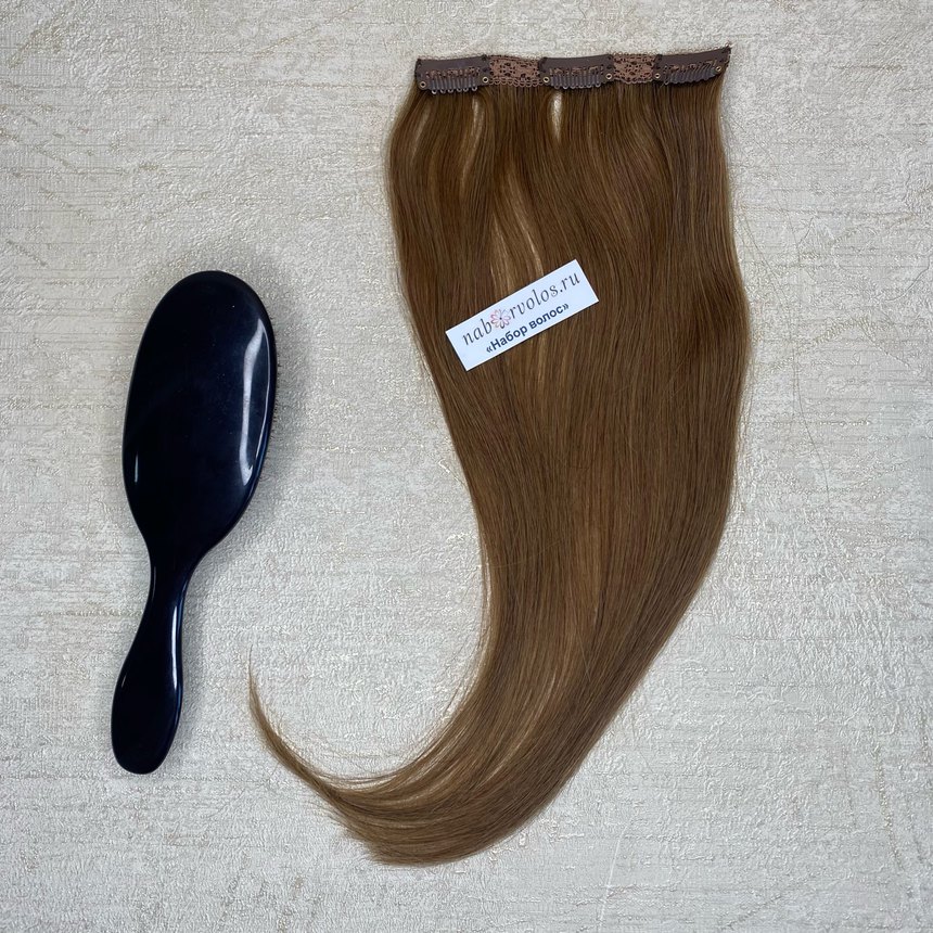 Натуральные волосы 40см - одна прядь на 3 заколках, темно-русый #6