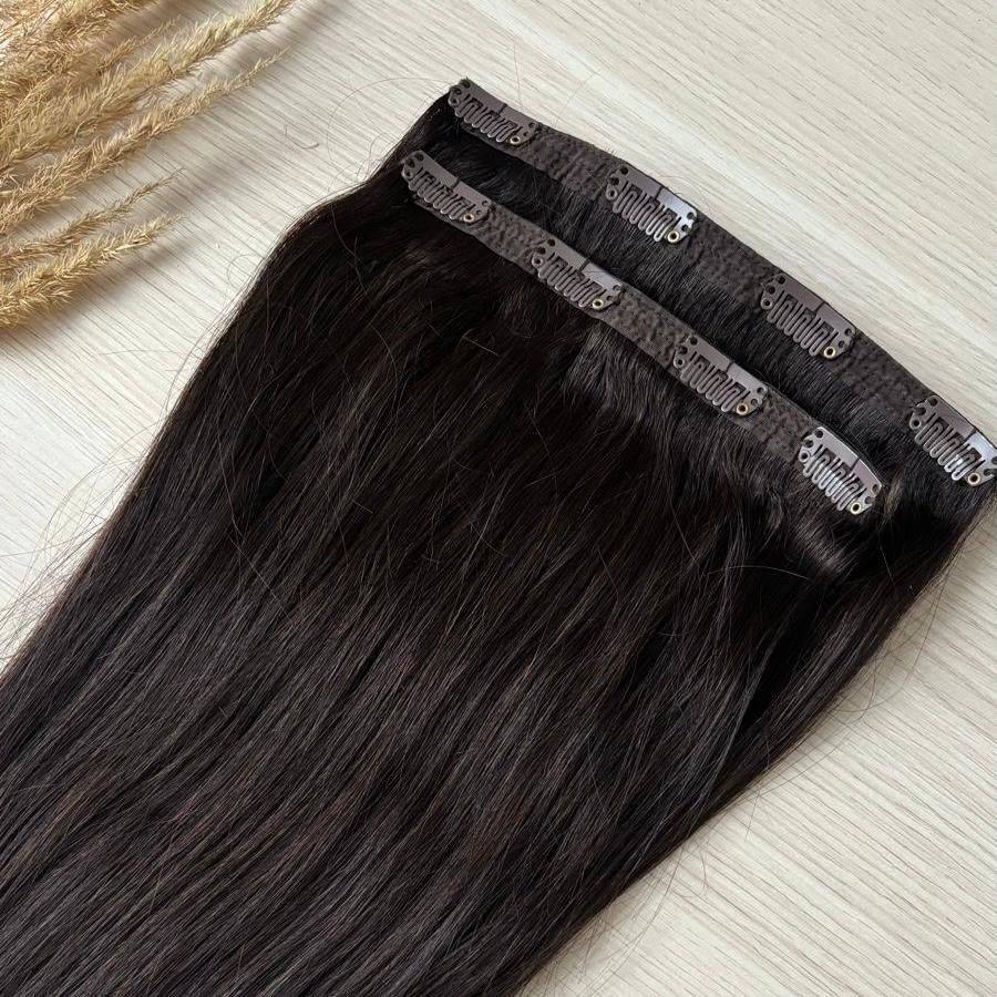 Натуральные волосы 45см - две пряди на заколках - горький шоколад #2