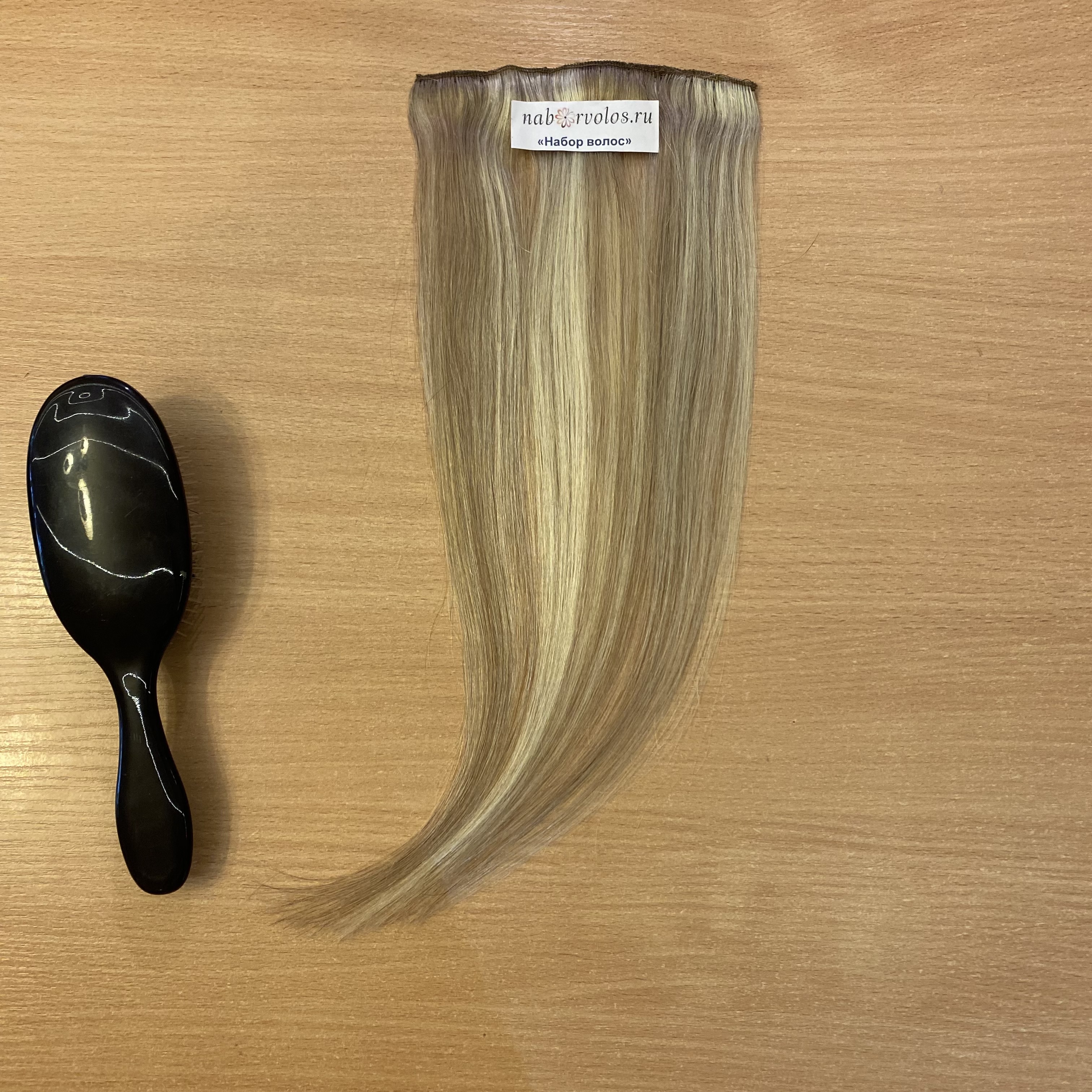 Натуральные волосы 50см - одна прядь на 3 заколках, мелированный #18.613