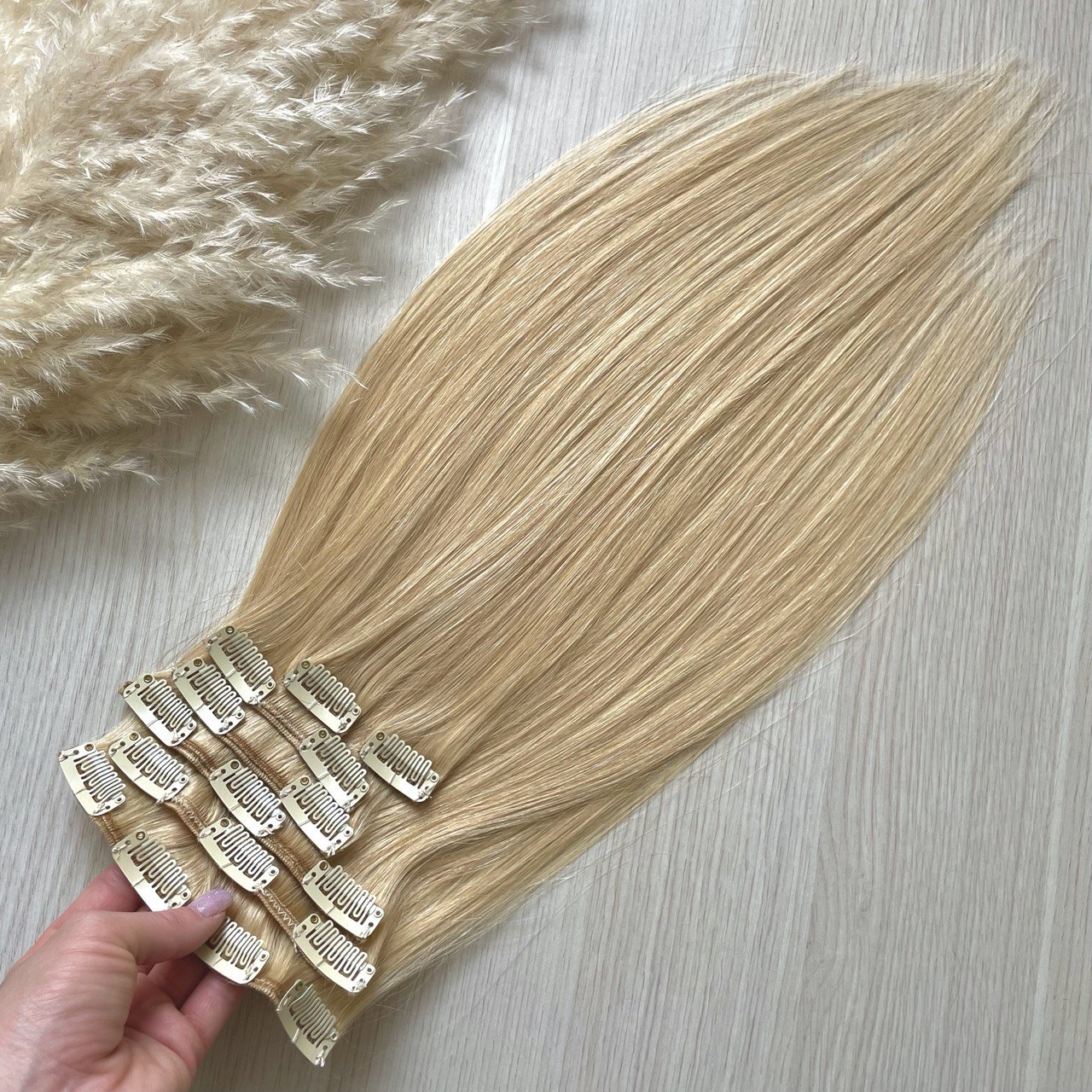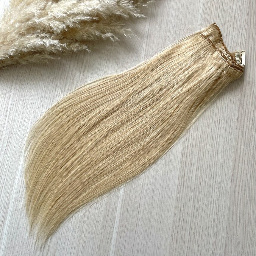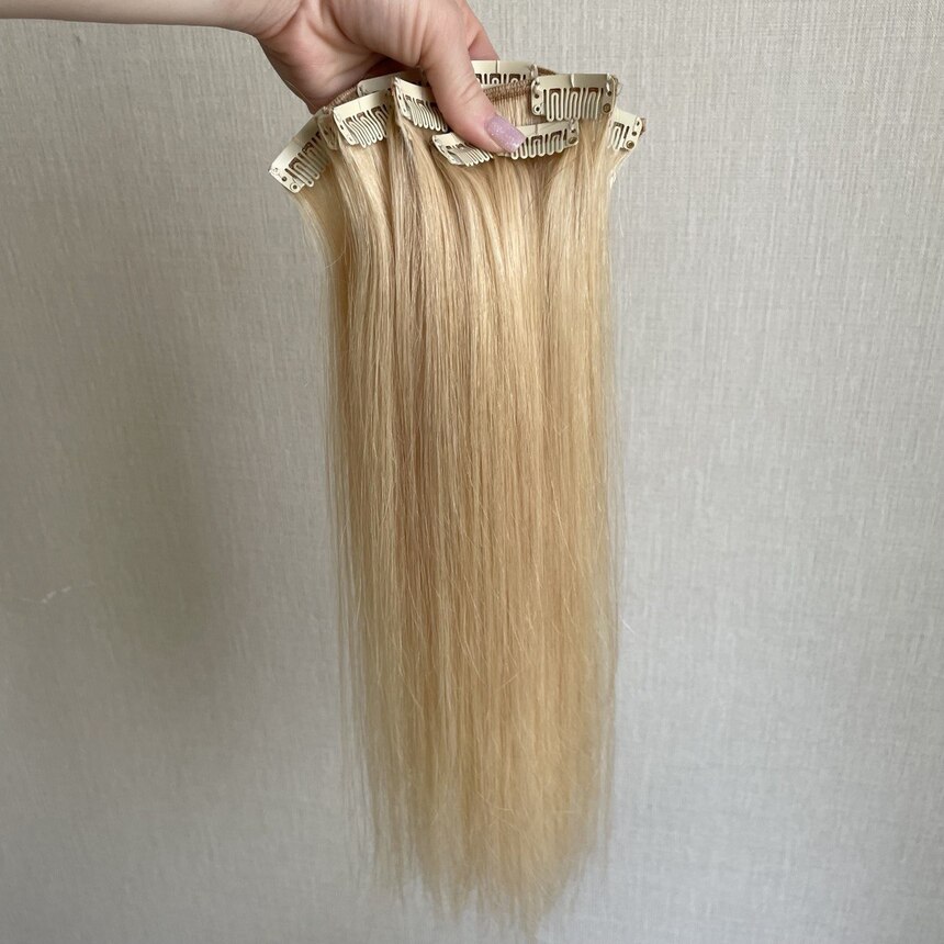 Накладные волосы на заколках – это набор накладных прядей, которые крепятся к своим волосам благодаря заколочкам с силиконовой прослойкой, с помощью которых пряди отлично держатся и не сползают. Волосы на заколках подходят для девушек, которые хотят длинные и густые волосы. Они подойдут как для создания свадебных и вечерних образов, так и для ежедневной носки (можно сделать сложную и легкую укладку, красивые курди или собрать пышный хвост). Заколки незаметны в прическе и не причинят вреда вашим собственным волосам. Наши трессы на заколках не содержат искусственных примесей. С ними можно делать всё, что со своими собственными волосами: окрашивать, тонировать, сушить феном, мыть, использовать плойку и утюжок. Трессы европейские премиум класса обеспечат длительную носку и отличный внешний вид в ходе использования.