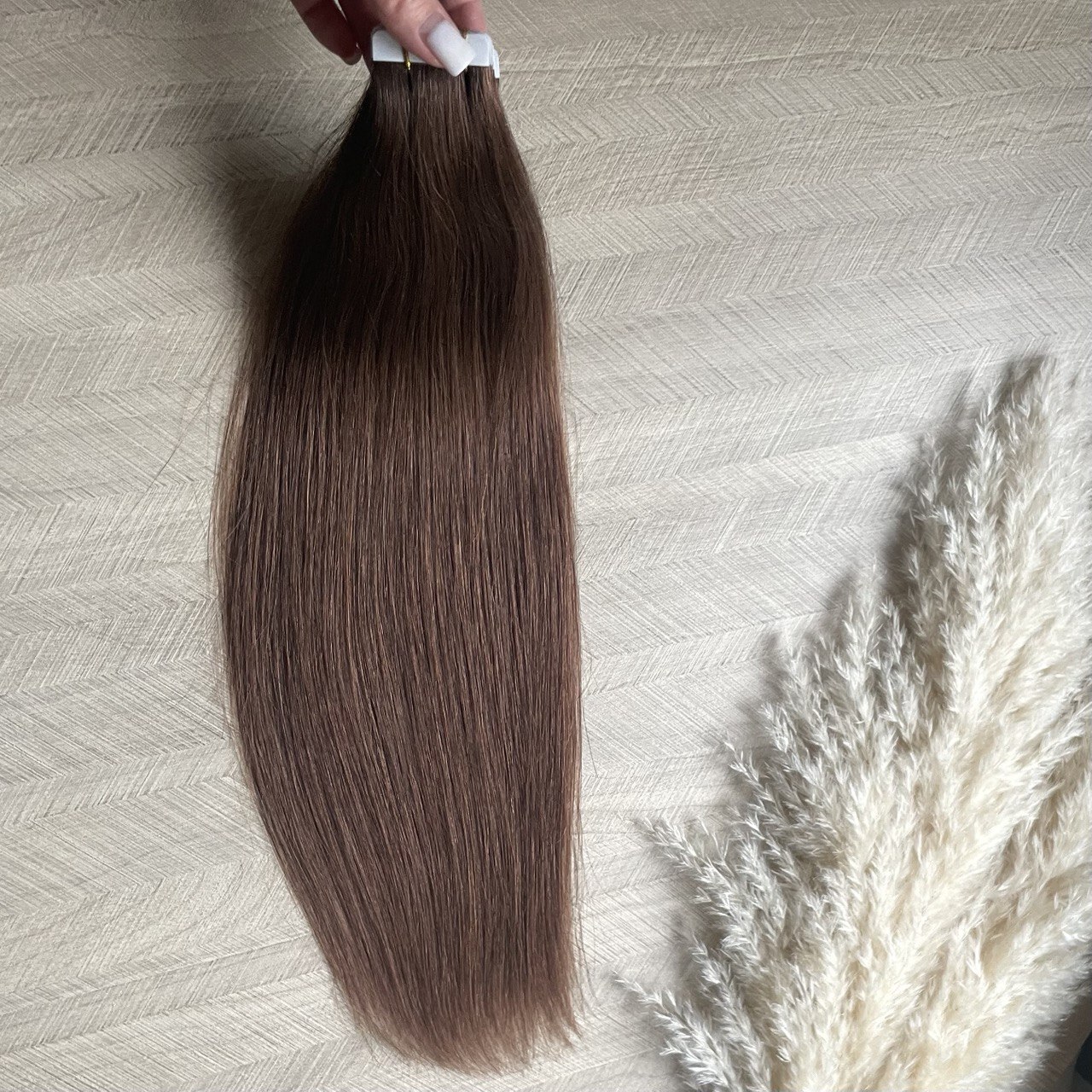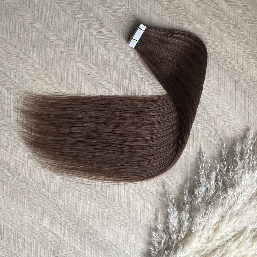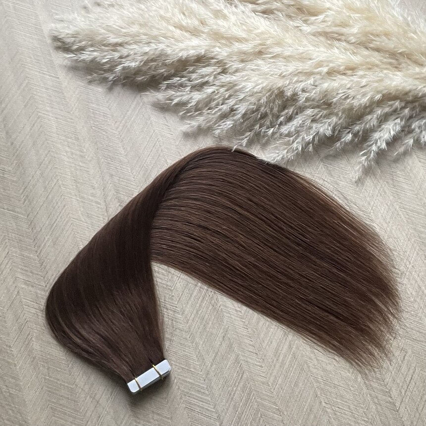Натуральные волосы на лентах 45см 20прядей 50г молочный шоколад #4