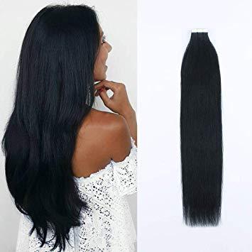 Натуральные волосы на лентах - 50см 20 прядей 40г - черные #1
