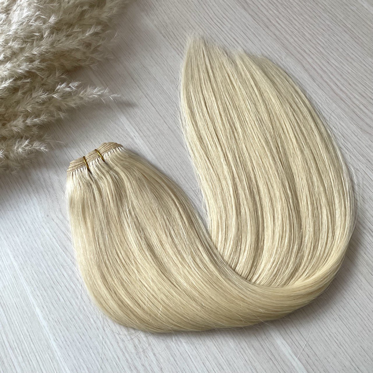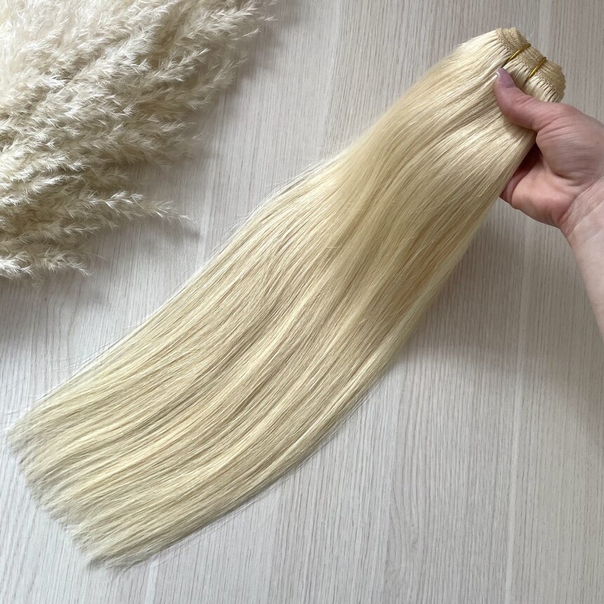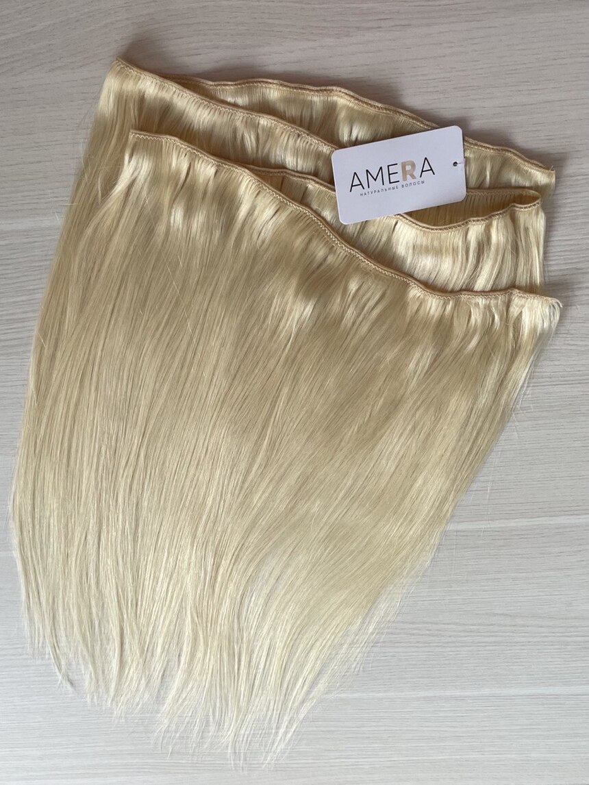 Натуральные волосы на трессе 50см 100г - блонд #60