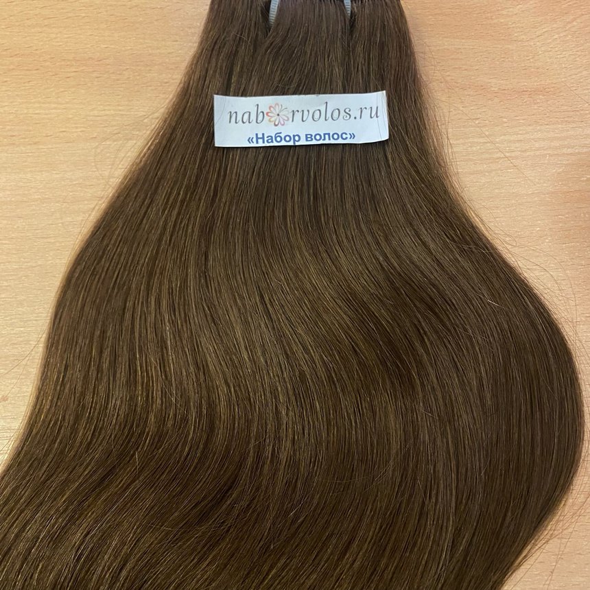 Натуральные волосы на трессе 50см 100г - коричневый #4