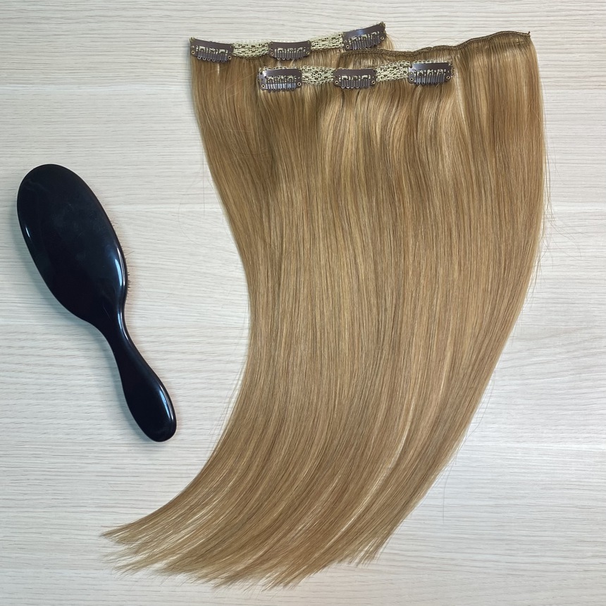 Натуральные волосы на заколках 40см 60г - карамельно светло-русый #18