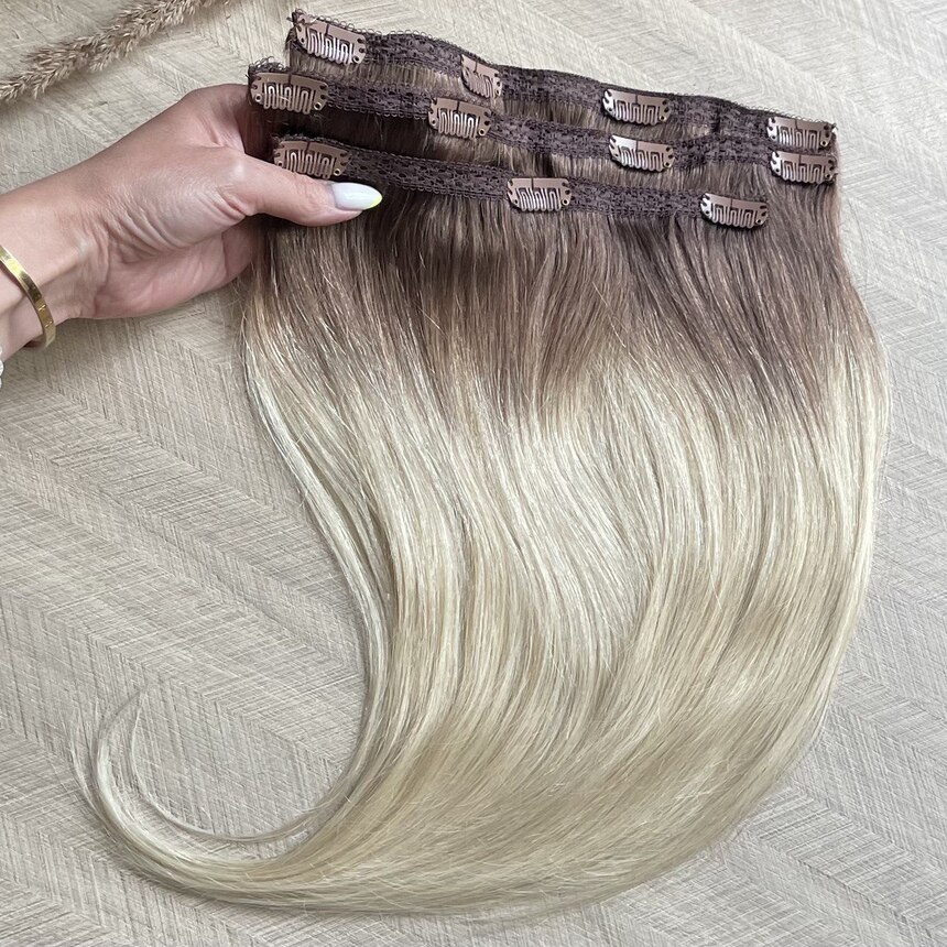 Натуральные волосы на заколках 40см 60г - омбре с прикорневым затемнением #4-60