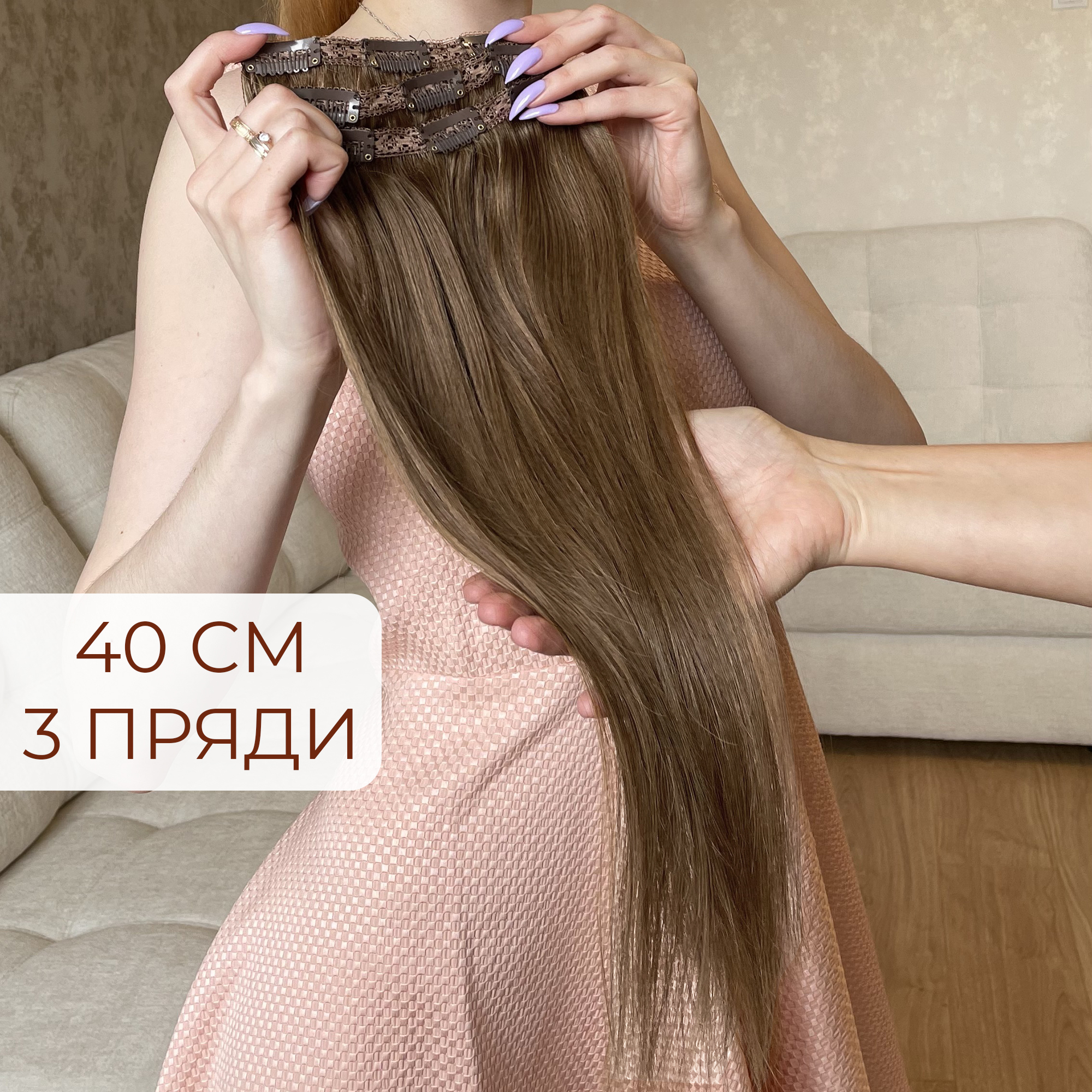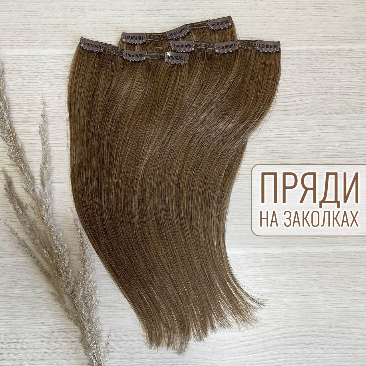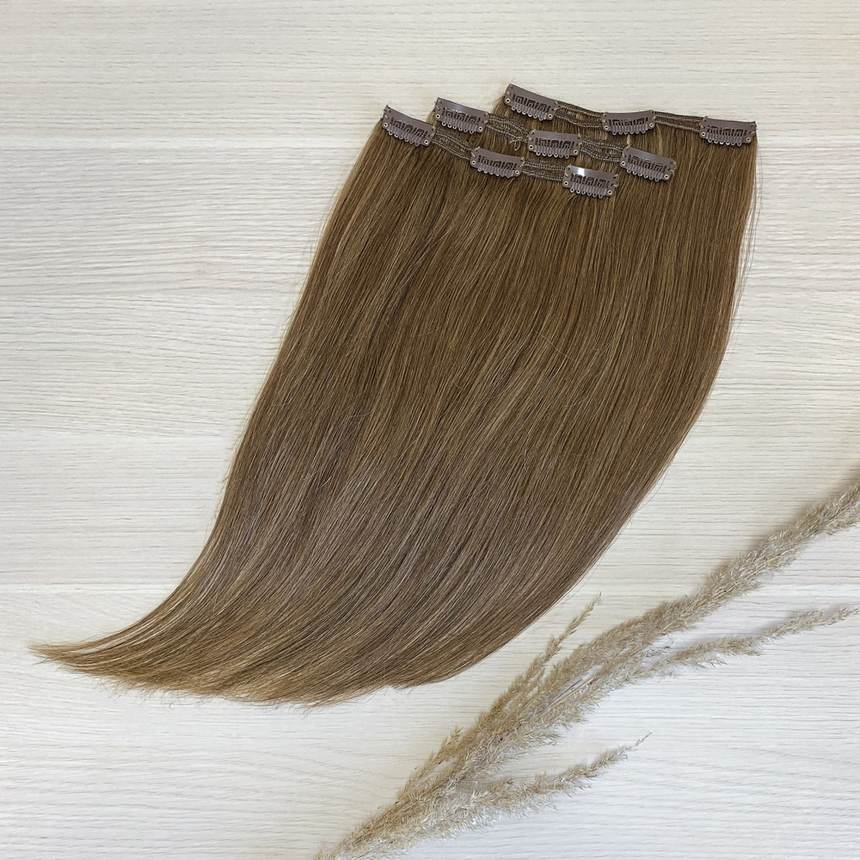 Натуральные волосы на заколках 40см 60г - темно-русый #6
