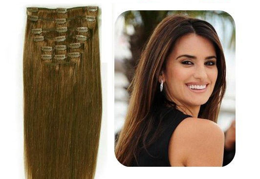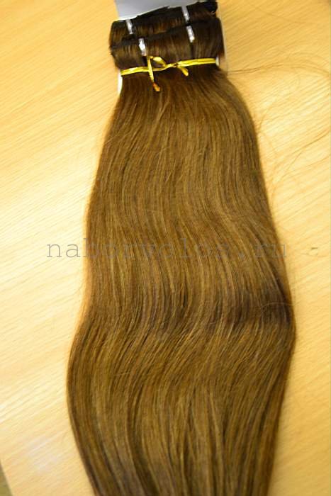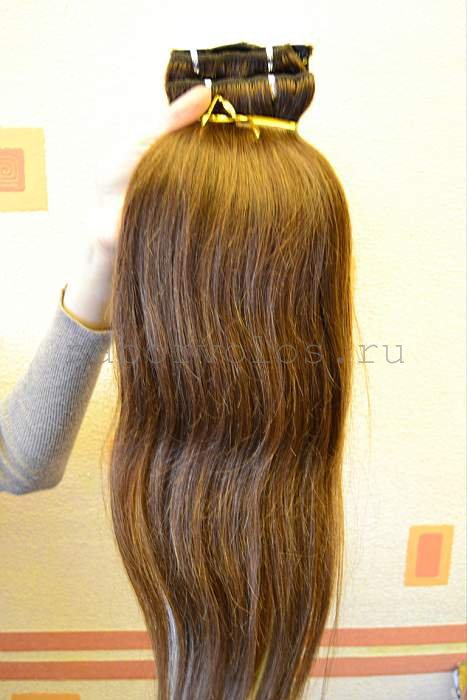 Натуральные волосы на заколках 50см 120г шатен