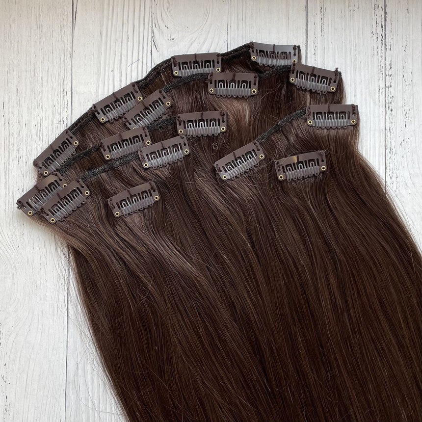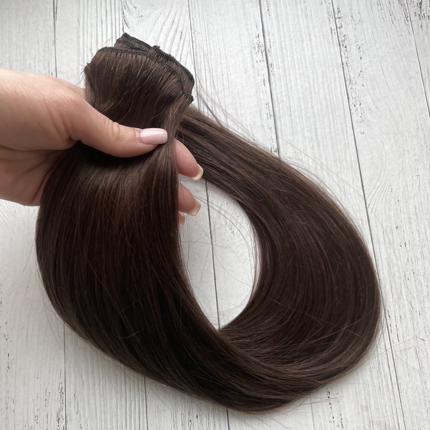 Натуральные волосы на заколках 50см 70г - коричневый #4