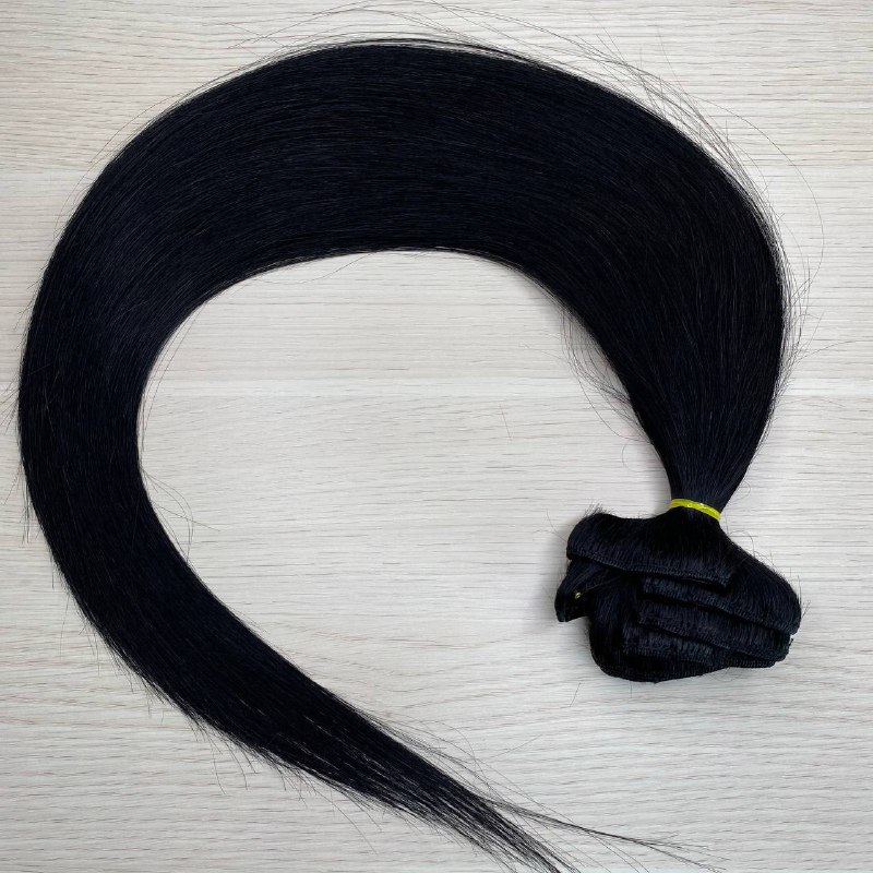 Натуральные волосы на заколках 60см 100 г - #1 черный