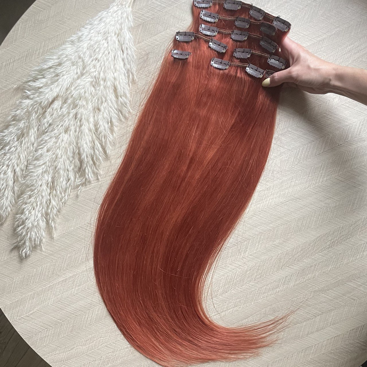Натуральные волосы на заколках 65 см 120 г - рыжий #130