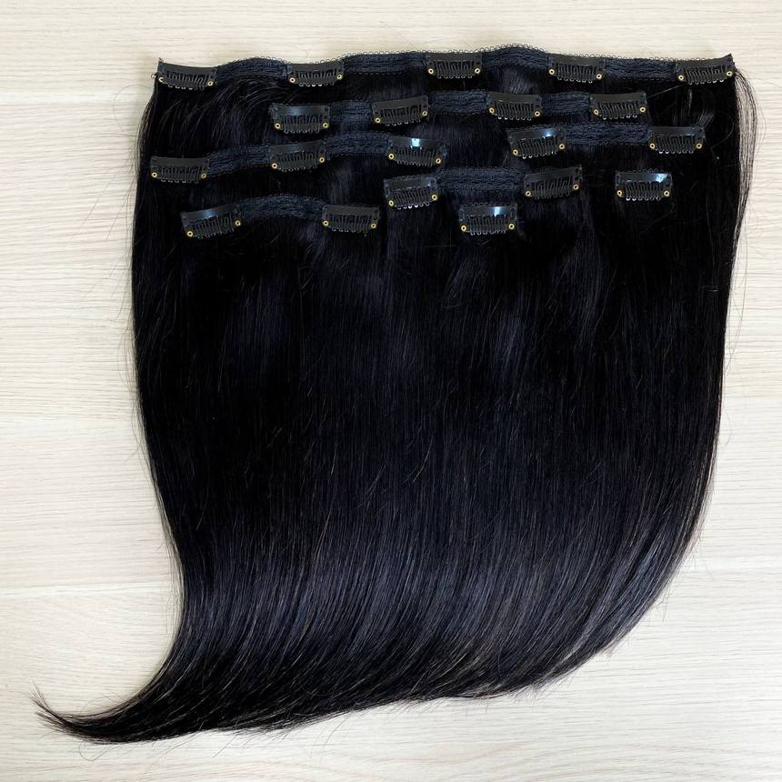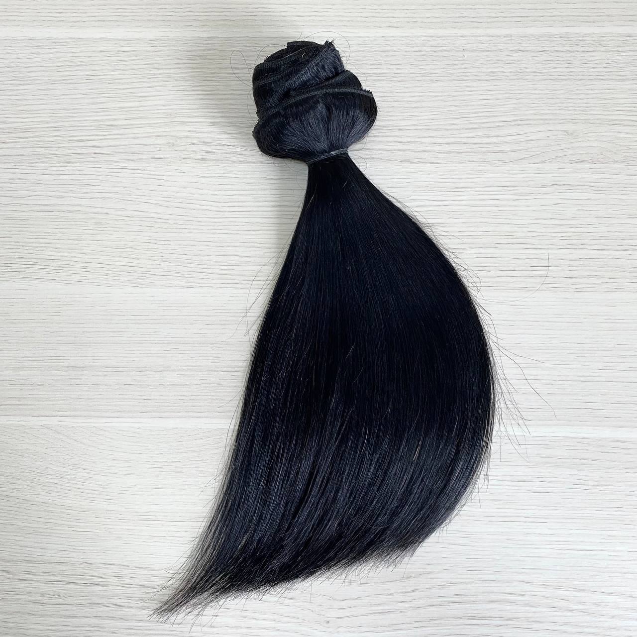 Натуральные волосы на заколках для наращивания 35см 110 - Черные #1
