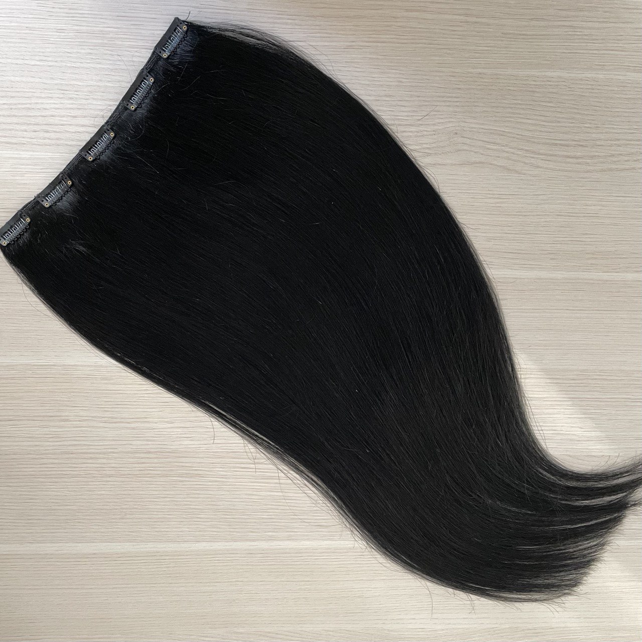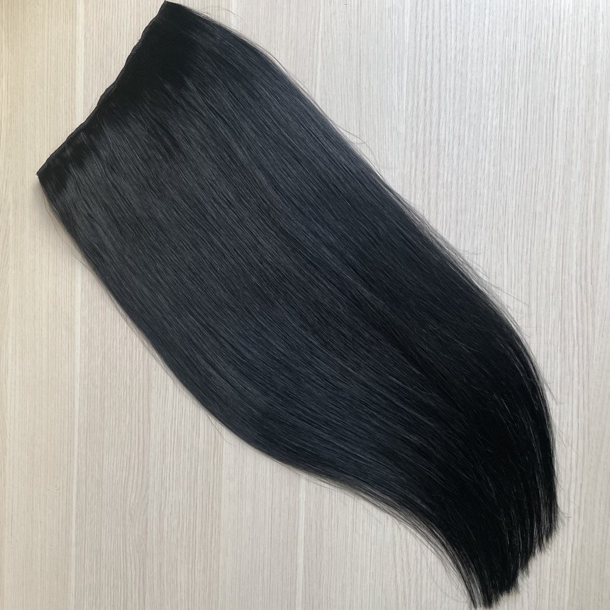 Натуральные волосы на заколках - однопрядь 65 см 120г черные