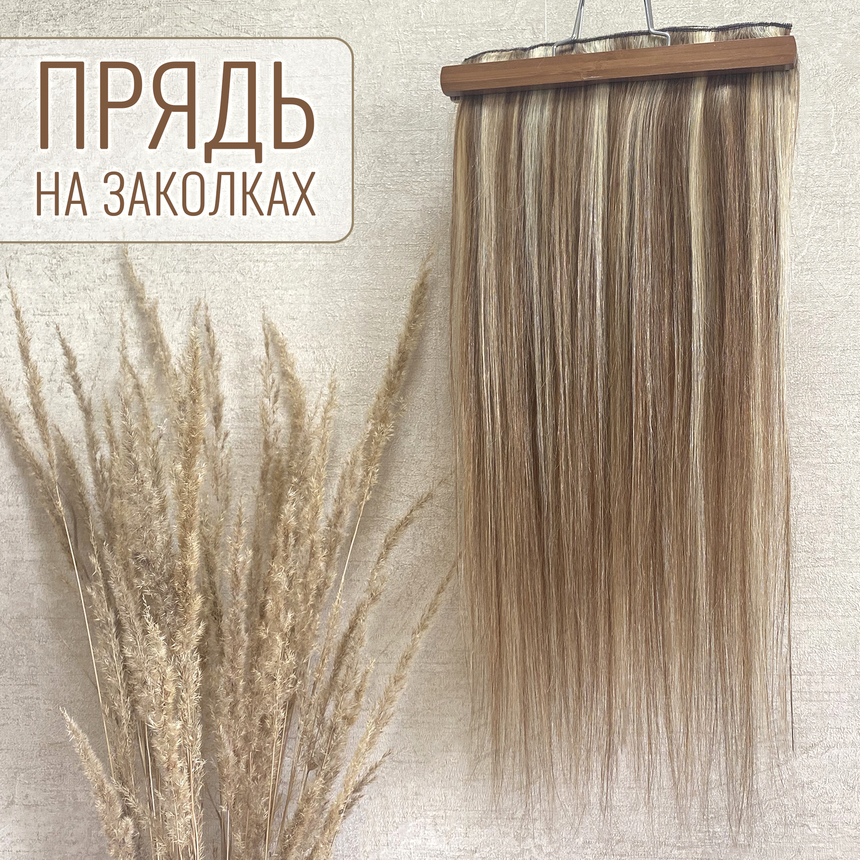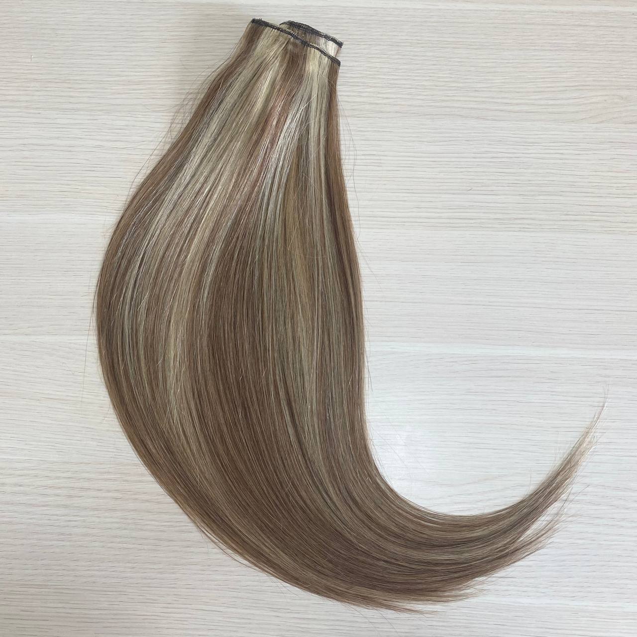 Натуральные волосы на заколках однопрядью 50см 100г - Мелированный #18/613