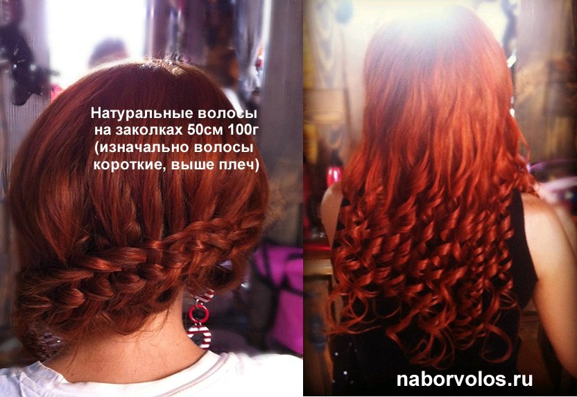 Натуральные волосы на заколках рыжие №130