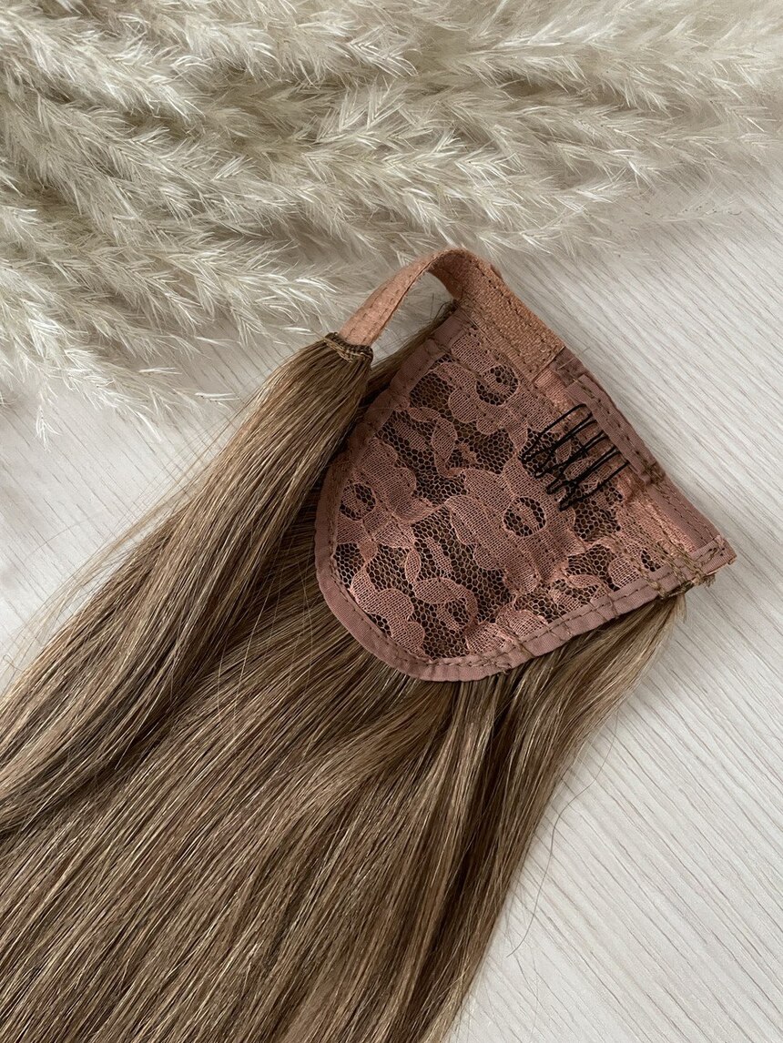Натуральный хвост на липучке 40см 60г - карамельно-русый #12