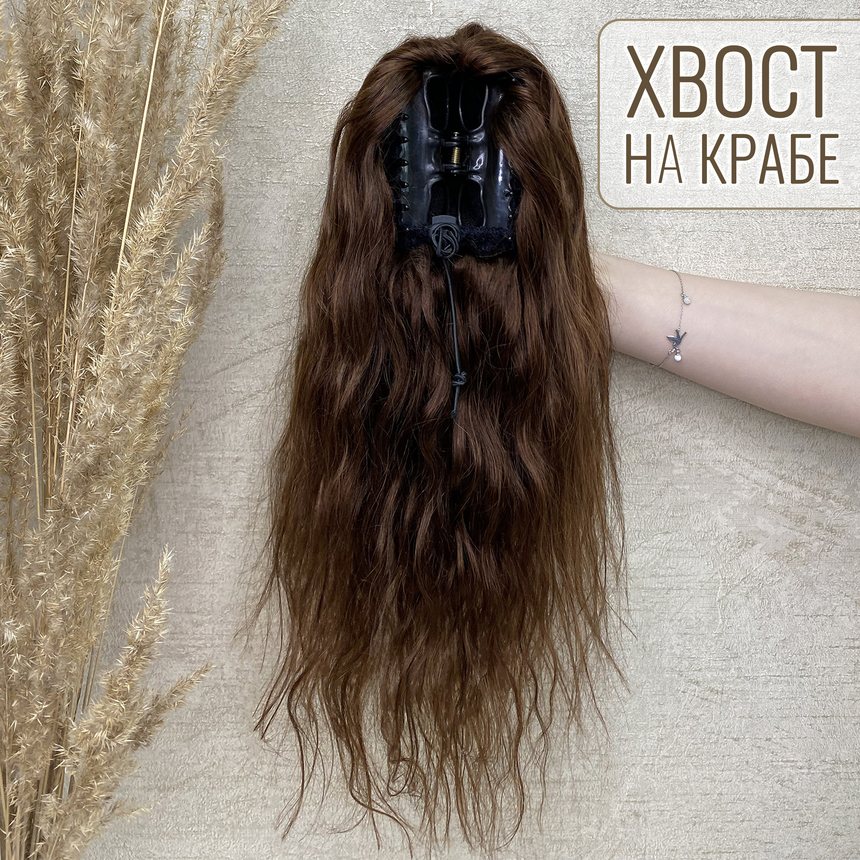Натуральный хвост - шиньон на крабе 40см -коричневый #4