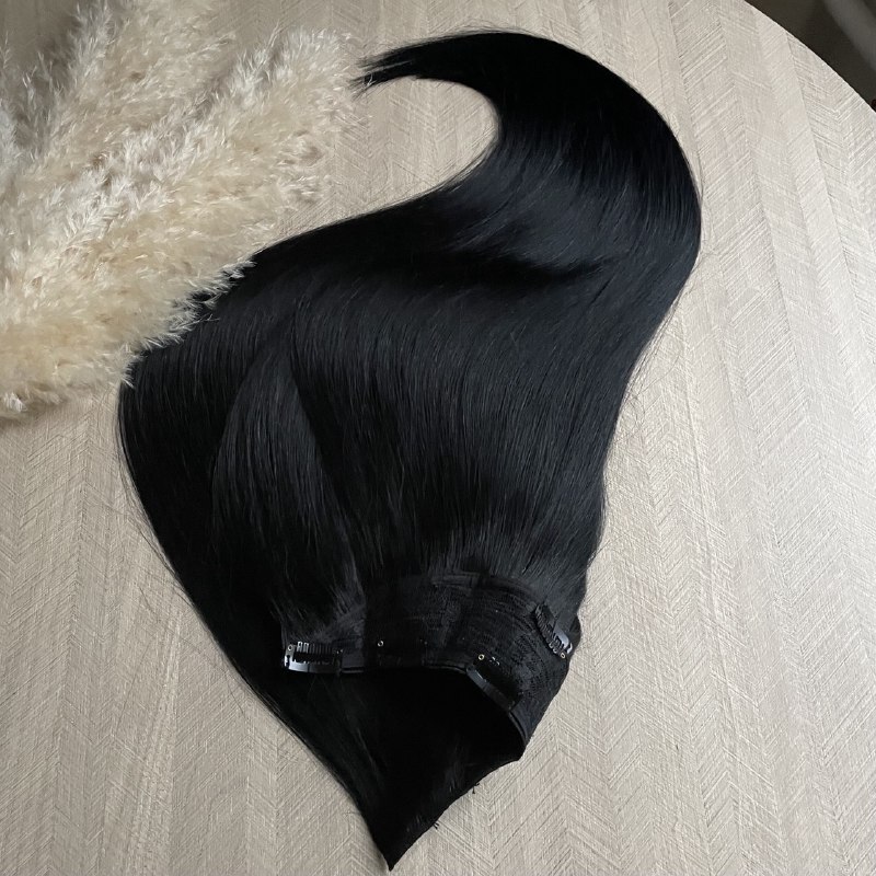 Однопрядь натуральная с височными зонами на заколках-65см 160г - черный #1