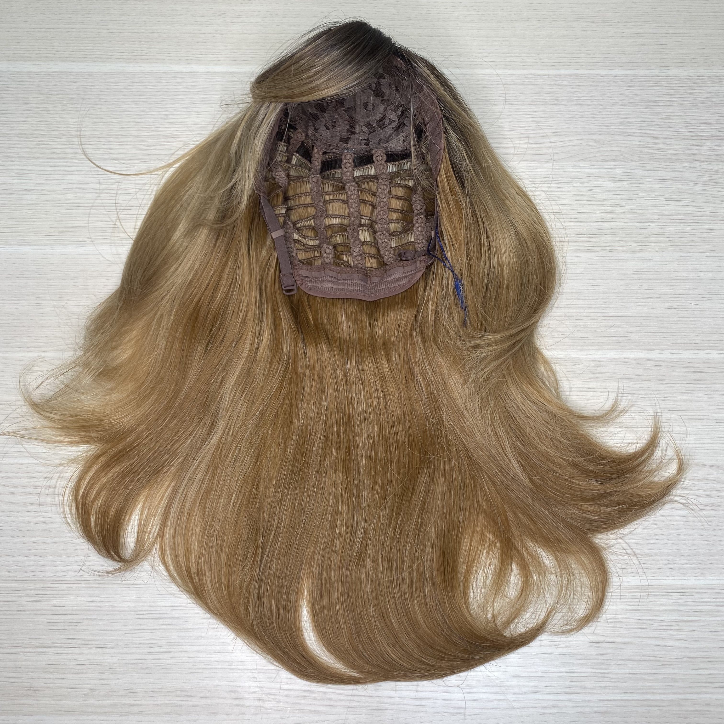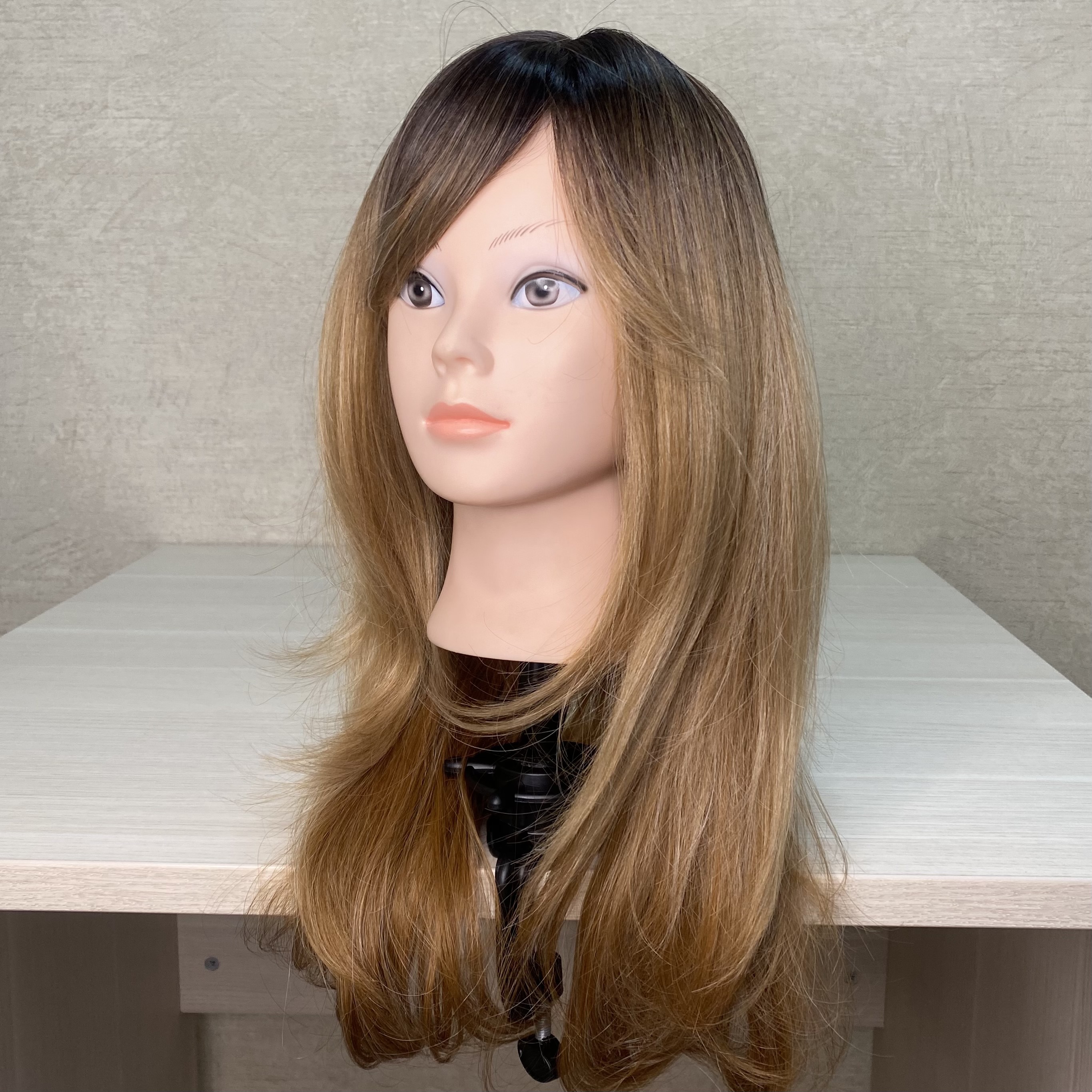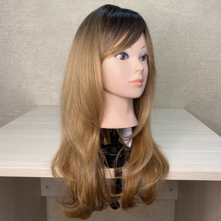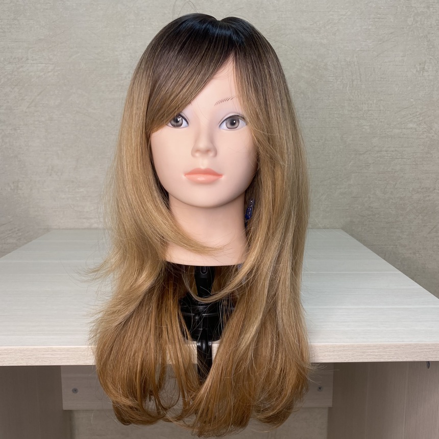 Парик карамельно-русое омбре с челкой из термоволос - #6140