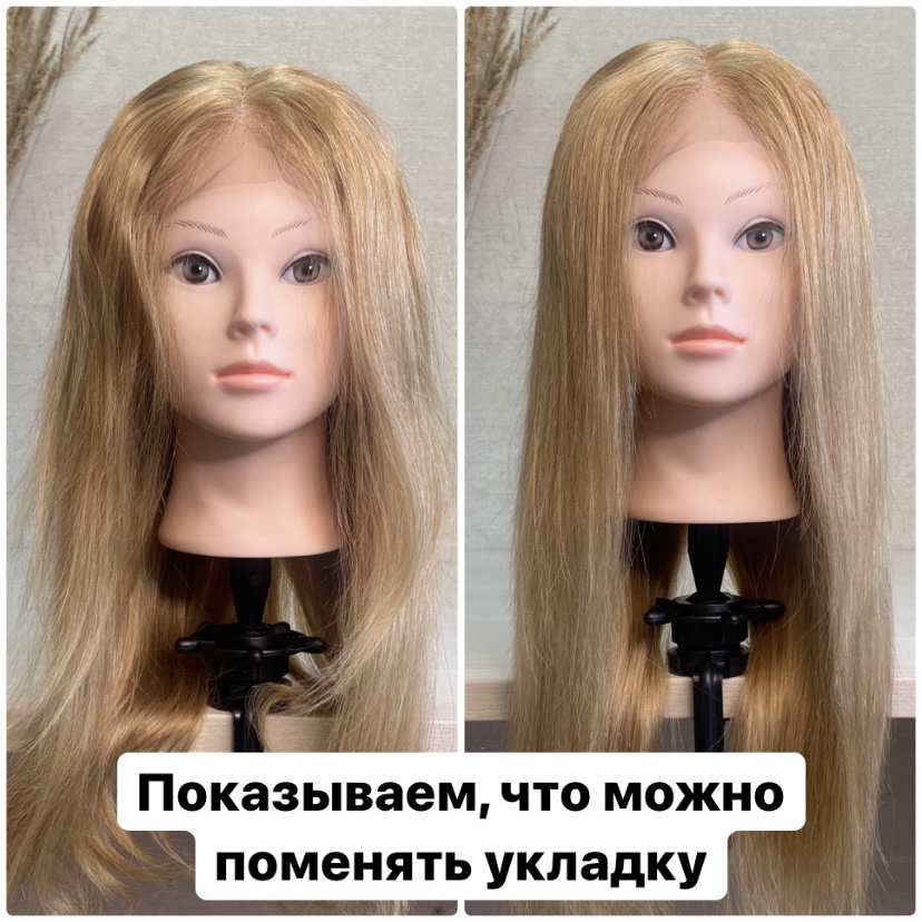 Полусистема из натуральных волос, очень густая и красивая. Волосы полностью натуральные без примемесей искусственных, их можно мыть, завивать, сушить феном, укладывать утюжком, окрашивать краской или тоникой. В полусистеме есть частичная имитация в теменной области на тоненькой сетке. Это значит, что пробор можно менять в любую, удобную вам сторону, что мы демонстрируем вам на фото. Полусистема выглядит естсетвенно и удобна в использовании, сеточка на лобной части срезается самостоятельно по линии роста волос.