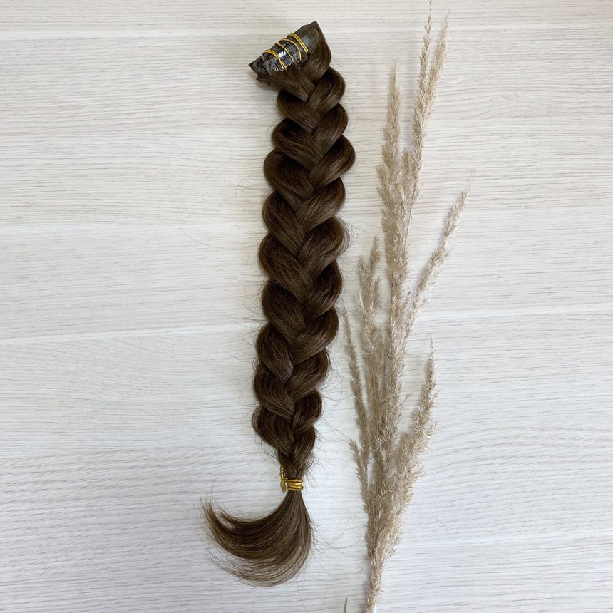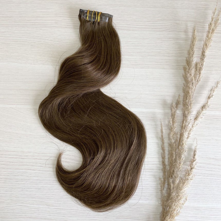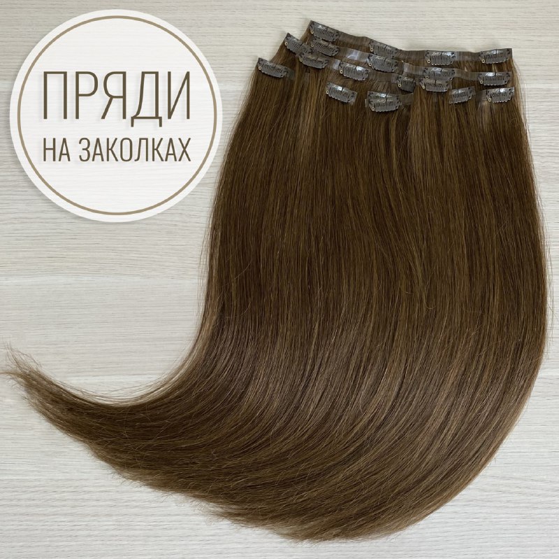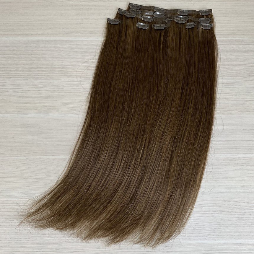 ПРЕМИУМ Натуральные волосы на заколках 50см 110г - коричневый #4