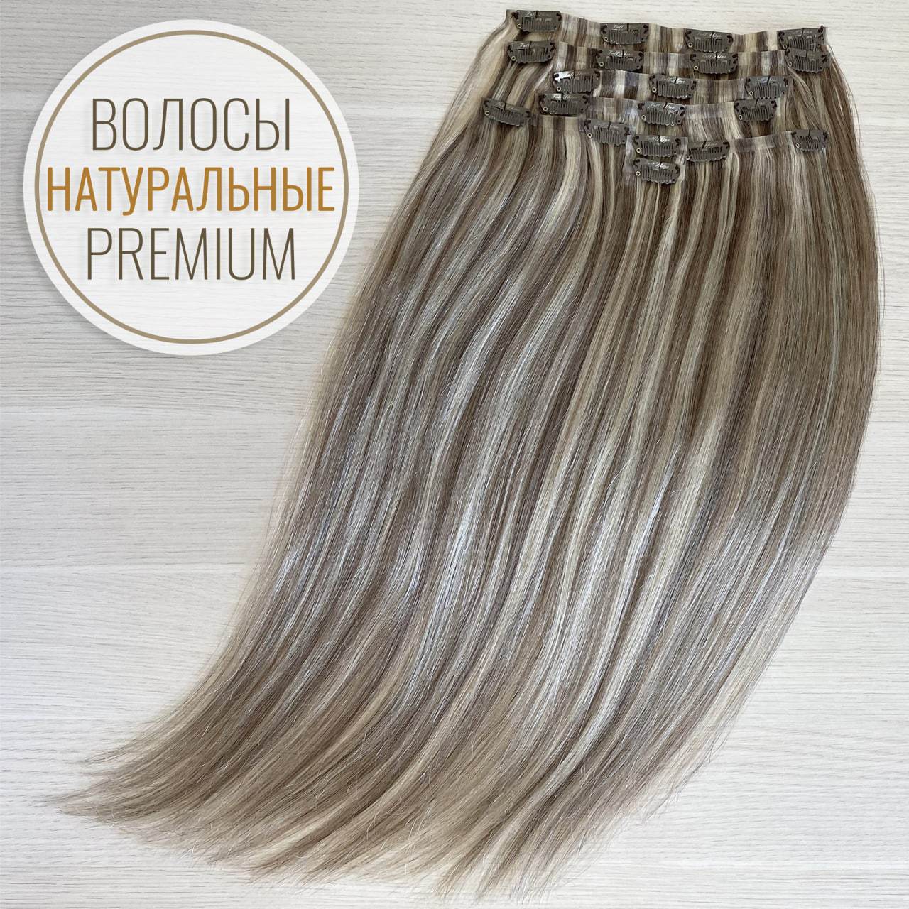 ПРЕМИУМ Натуральные волосы на заколках 50см 110г русый + блонд #8/60