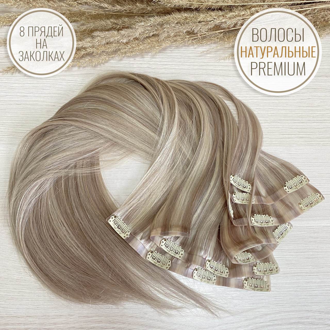 ПРЕМИУМ Натуральные волосы на заколках 50см 110г - светло-русый + блонд #18,613