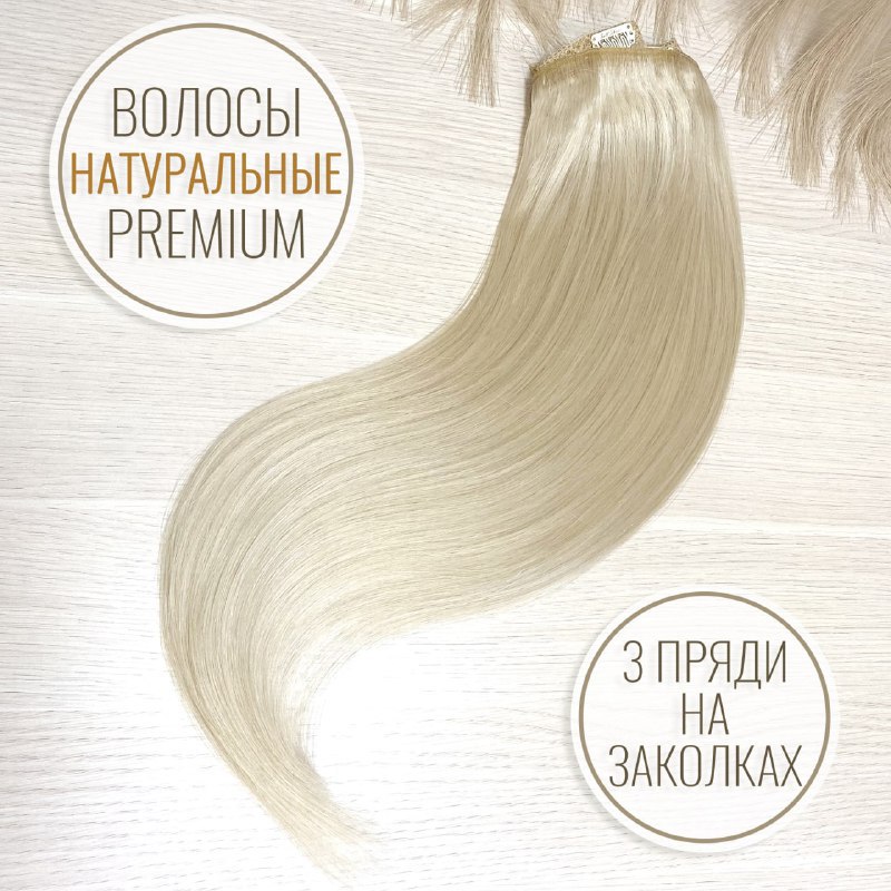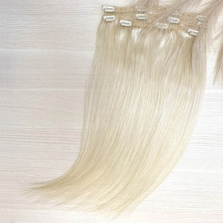 ПРЕМИУМ натуральные волосы на заколках пепельный блонд 50см 60г #1000
