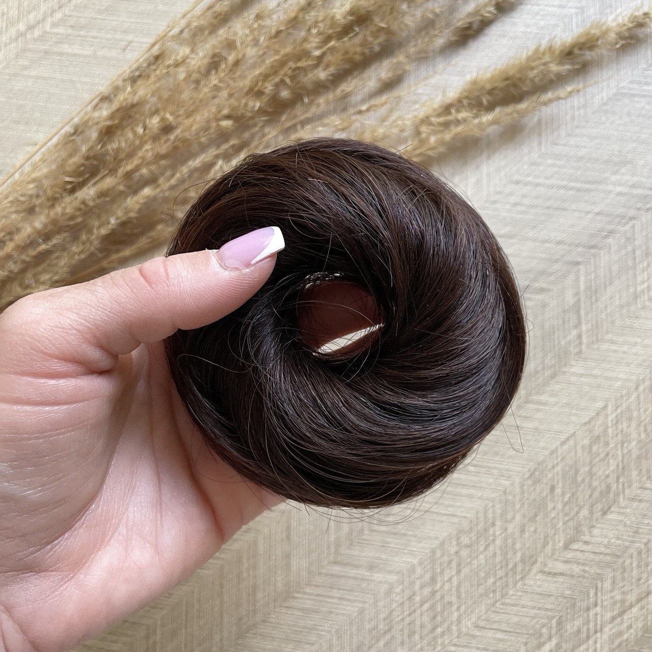 Пучок на резинке из натуральных волос - Горький шоколад #2