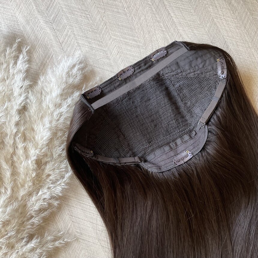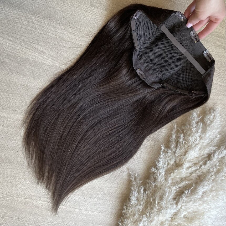 Полупарик из натуральных волос с открытой теменной зоной для придания объема и густоты.
