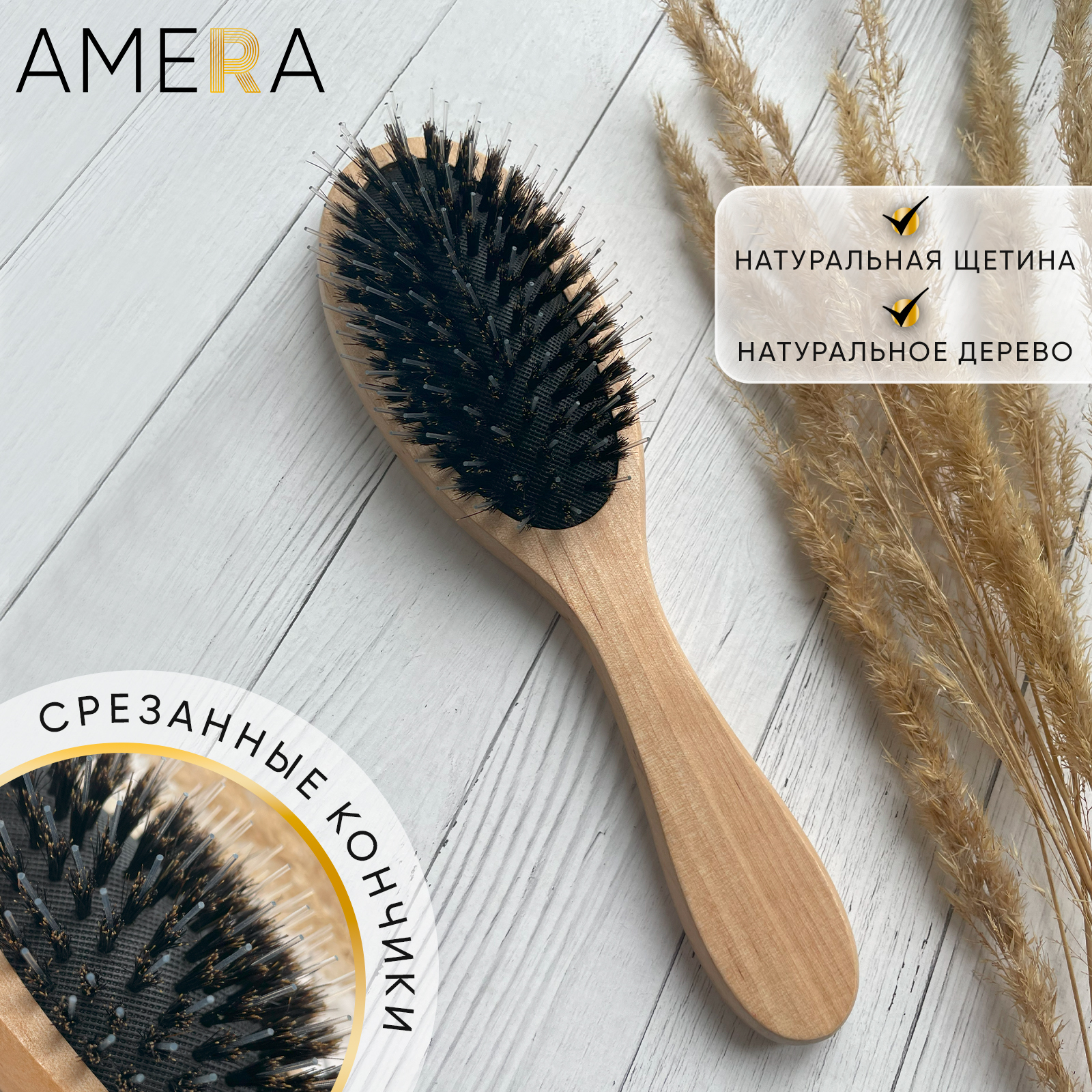 Расческа с натуральной щетиной для волос