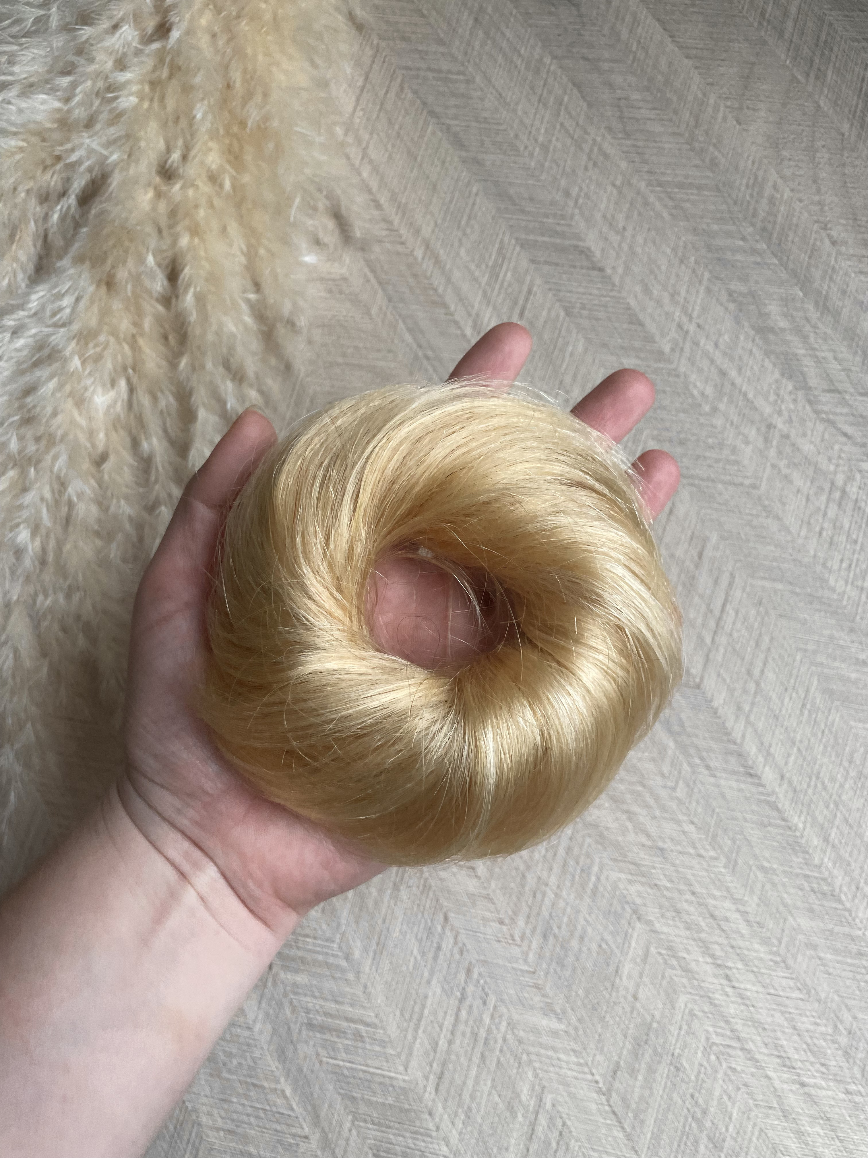 Резинка изготовлена из натуральных волос. Пучок повышенной густоты. Шиньон можно сушить феном, тонировать, мыть, выпрямлять, накручивать. С помощью резинки-шиньона Вы легко и быстро создадите красивую прическу. Оберните резинку вокруг хвоста или пучка - и прическа готова.