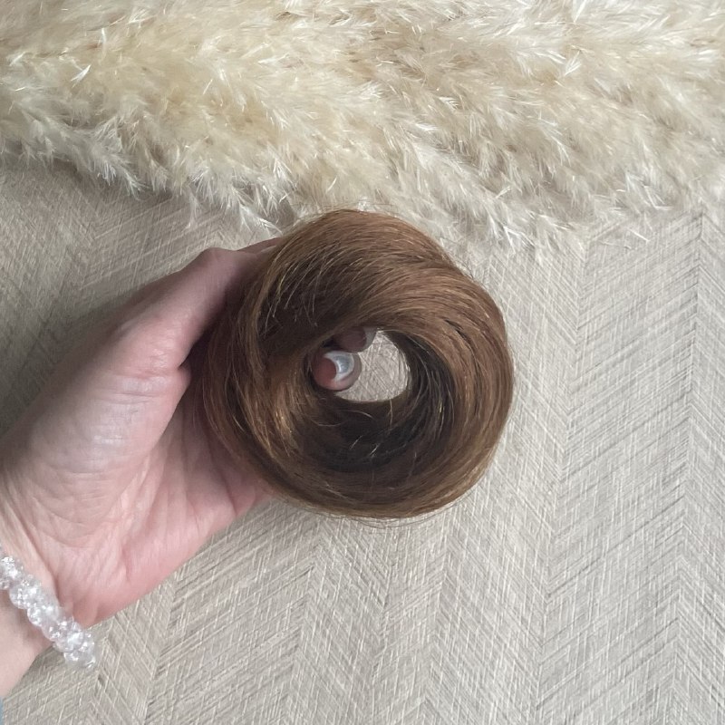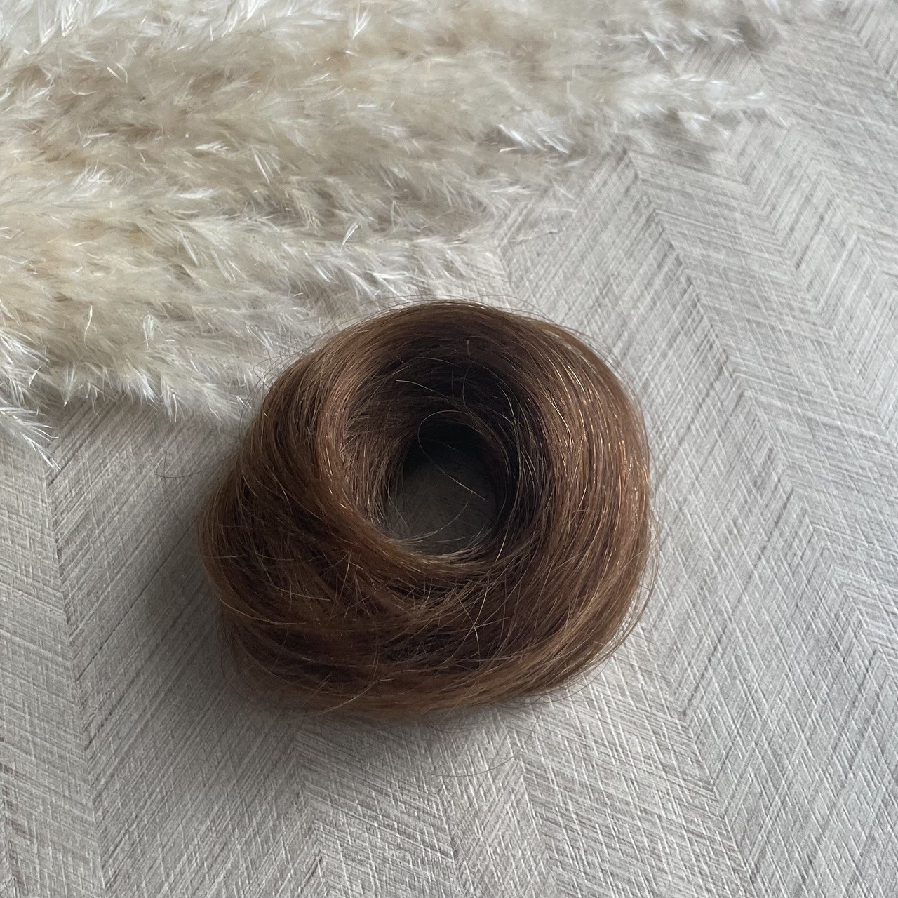 Шиньон-резинка изготовлена из натуральных волос. Служит для красоты и функциональности одновременно. С помощью такой резинки вы сможете очень быстро и легко создать новый шикарный образ. Шиньон можно завивать, мыть, сушить, выпрямлять утюжком. Резинка совершенно не ощутима в волосах.