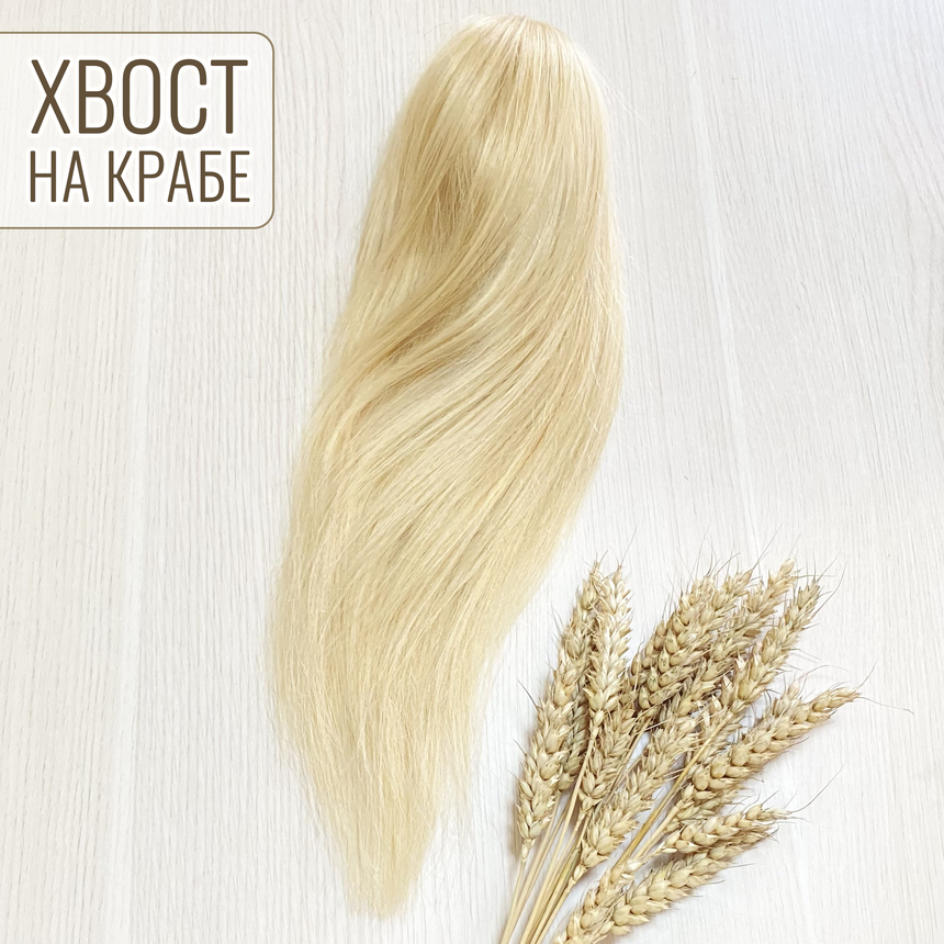 Шиньон - хвост на крабе из натуральных волос 40см - блонд #613
