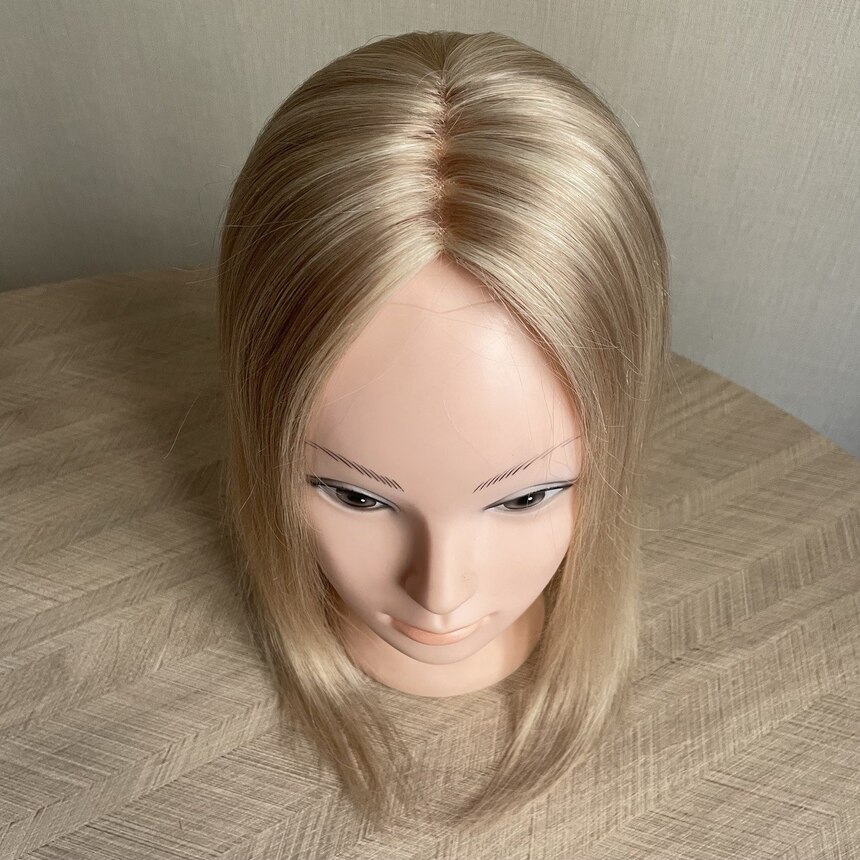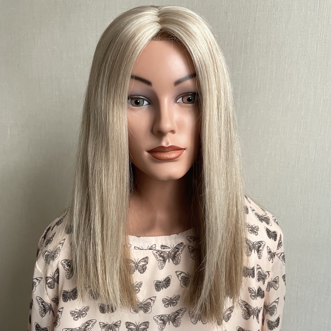 С полной имитацией кожи головы. Повышенная густота. Пробор можно делать на любую сторону. Волосы 100% натуральные, можно тонироватьть, мыть, укладывать.