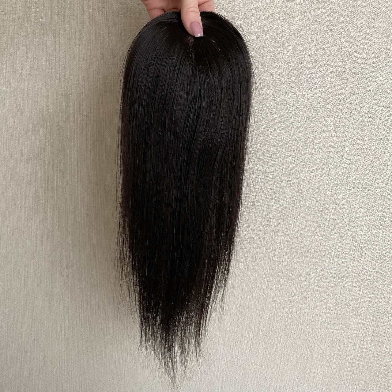 Теменная накладка из натуральных волос 30 см - #1b натуральный черный