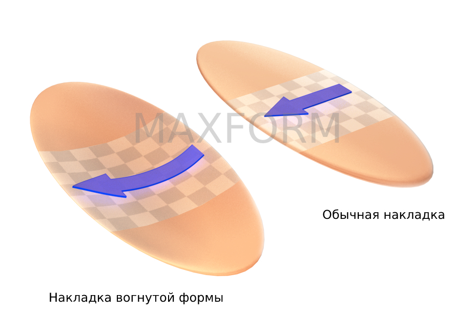 Вогнутые по форме икры корректоры для максимально прилегания и удобства в носке. Уникальная форма - вогнутые накладки вы можете приобрести только у нас!